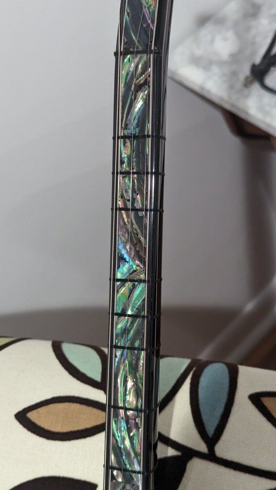 TECHNICAL SPECIFICATIONS Mint condition Ebony (press) body, 39 cm Bridge tone controls Necarman Pick up Ebony Auger Ebony Veneer Polyester lacquer, Mother of pearl on the entire fingerboard Includes luxury carrying case, two sets of strings, and special picks. Moveable frets.