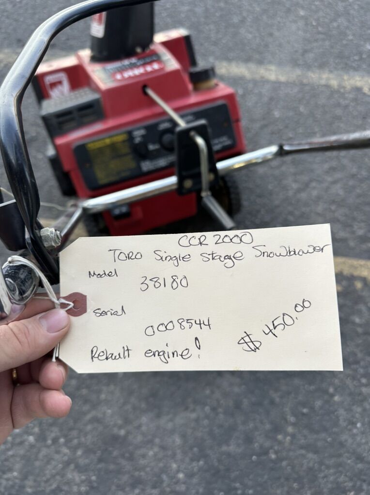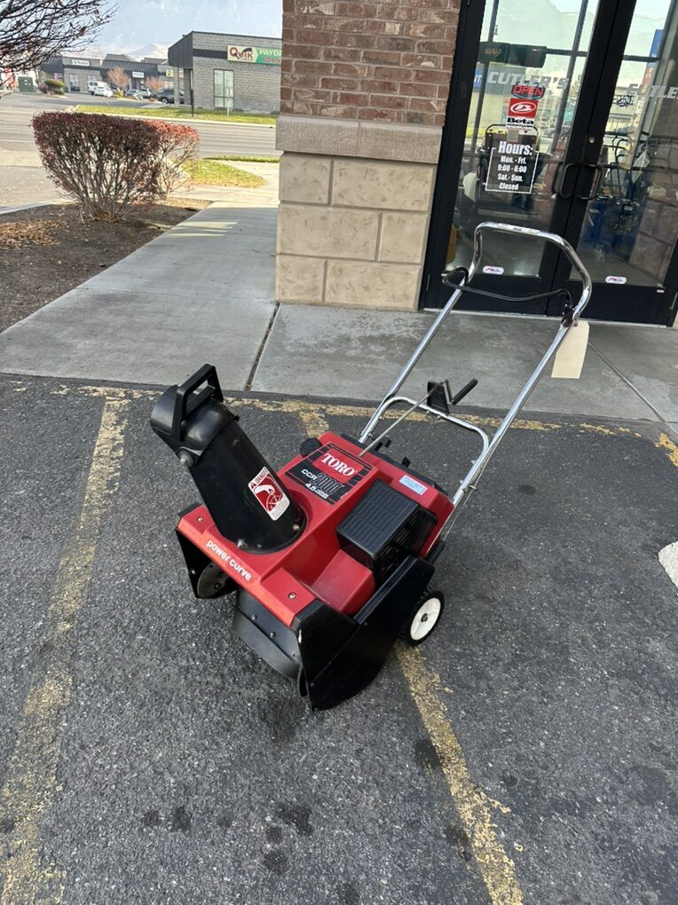 This is a used Toro single stage snowblower for sale at Cutler's. This model has been professionally refurbished by a power equipment mechanic and is in good working condition. This model has a crank chute handle, electric start, and new paddles. This model also has a freshly rebuilt engine, so it is good to go for years and years to come.