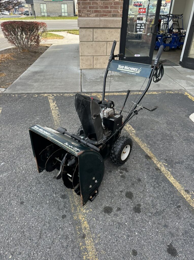 This is a used Yard Machine 2 stage snowblower for sale at Cutler's. This model has been fully refurbished and is in great running condition. All work has been done by a professional power equipment mechanic. This machine is powered by a 5HP Tecumsheh engine and it runs great. It has a 22 inch clearing width.