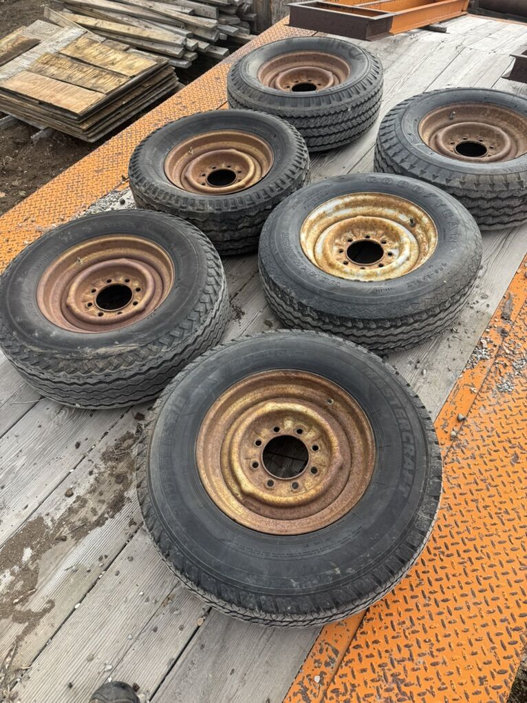 Venmo16.5 rims the tire size is 9.5 R 16.5 LT. I am selling these rims and tires together $50 apiece or I will sell the lot of them altogether for $200 for all six. A couple of tires still seem to be in decent shape and are holding air.