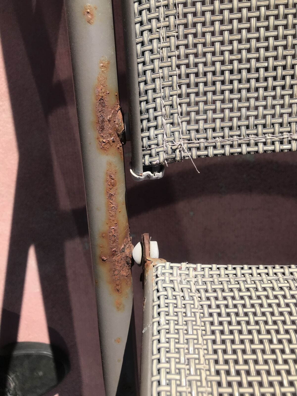 Made of metal and wicker in great shape with rust spots starting to form around some areas