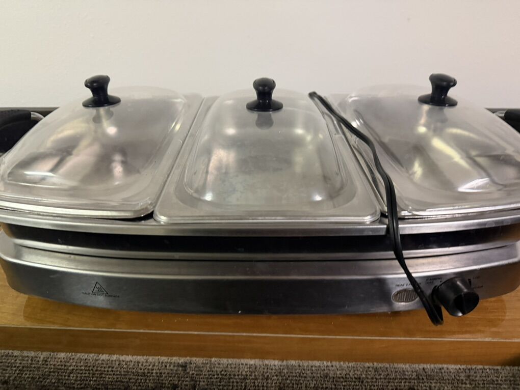Venmo8 cup capacity per each side container 9 cup capacity for center plus more if heaping portions like solid foods that can pile up a bit