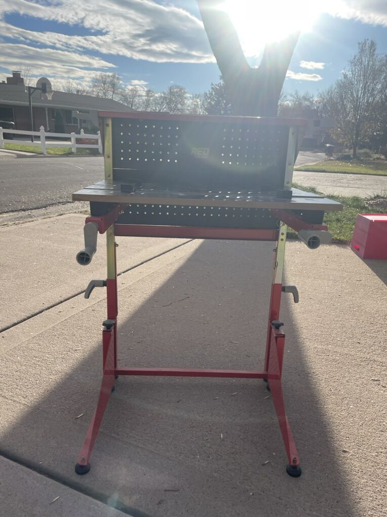 VenmoAmazing kids fully adjustable workbench. Folds away for easy storage. Adjustable height to grow with them. Operational clamping /work area w adjustable clamp. Pre printed measurements so they can easily measure. Best bench out there.