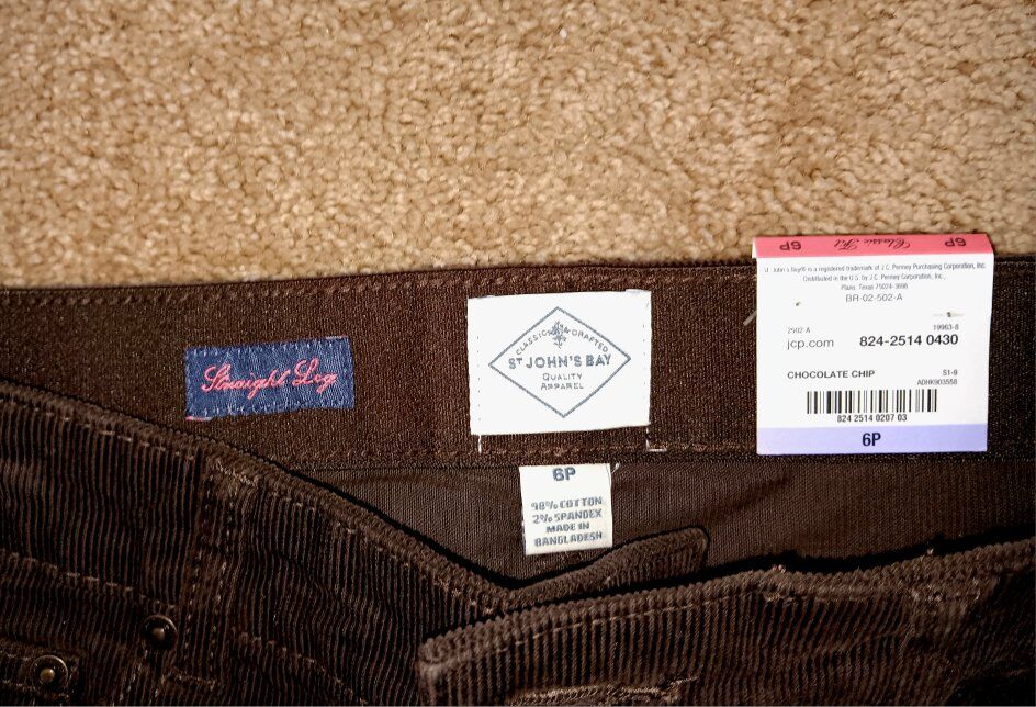 VenmoWomen's dark brown corduroy pants, brand new, never worn, tags still on. Size 6 petite, classic fit, secretly slender. Sits just below the waist, relaxed through hip and thigh, straight leg. Excellent condition. Smoke free, pet free home $10