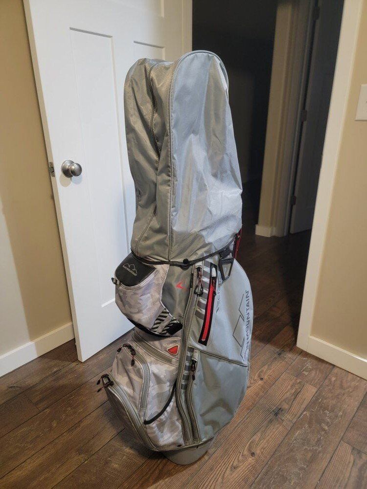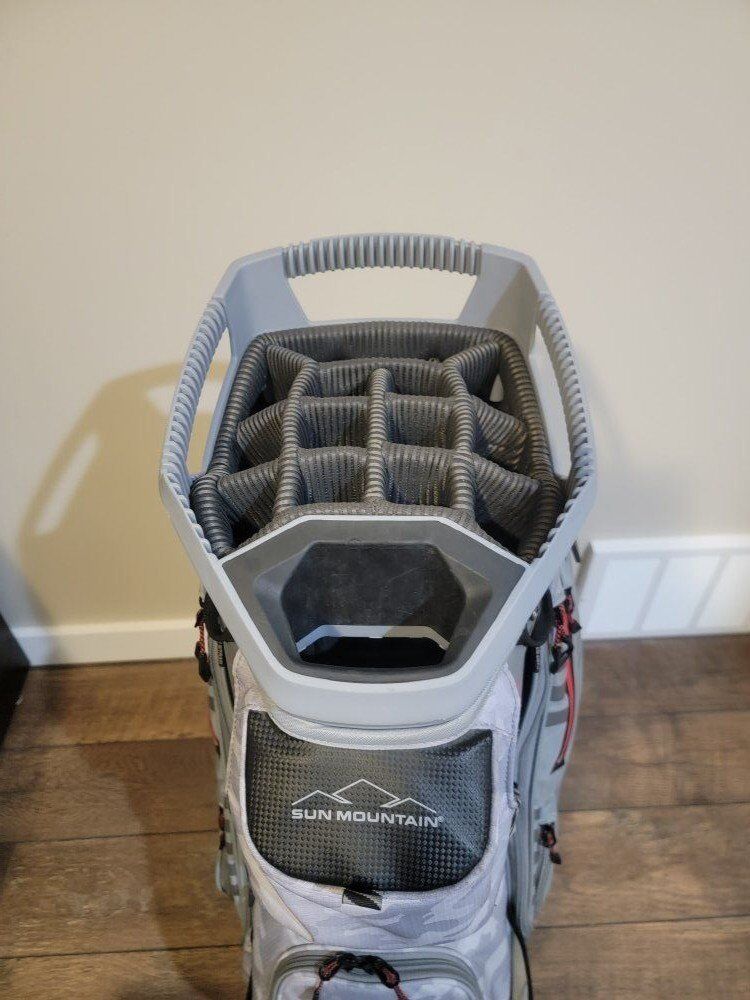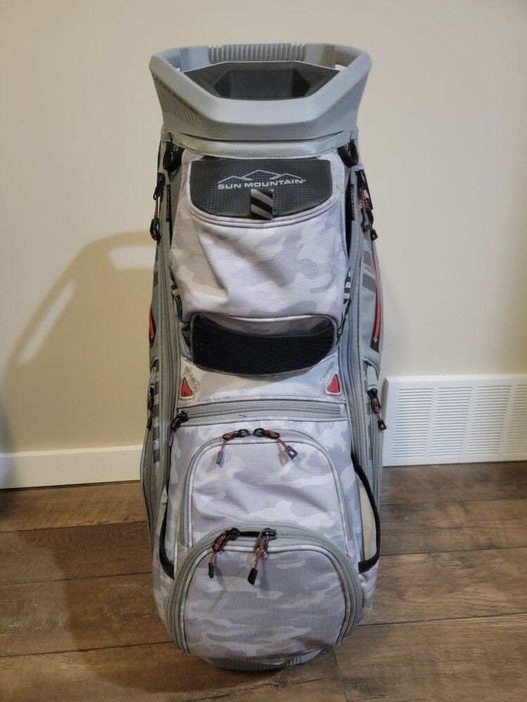VenmoSun Mountain C-130 Gray Camo Cart Bag that 2 years old and in great shape. The C-130 Cart Bag with 14 way divider offers maximum storage capacity and exceptional organization. This best-selling cart bag is perfect for any golfer looking to stay organized on the course.