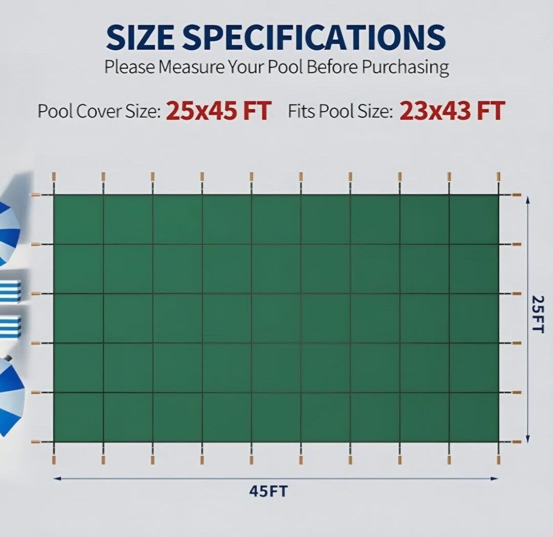 Inground Pool Safety Cover,Heavy-Duty Winter Safety Cover for Inground Swimming Pools,Triple-Stitched Rectangle Pool Cover,Reinforced Design, All-Weather Protection (Green, 23FT x 43FT)