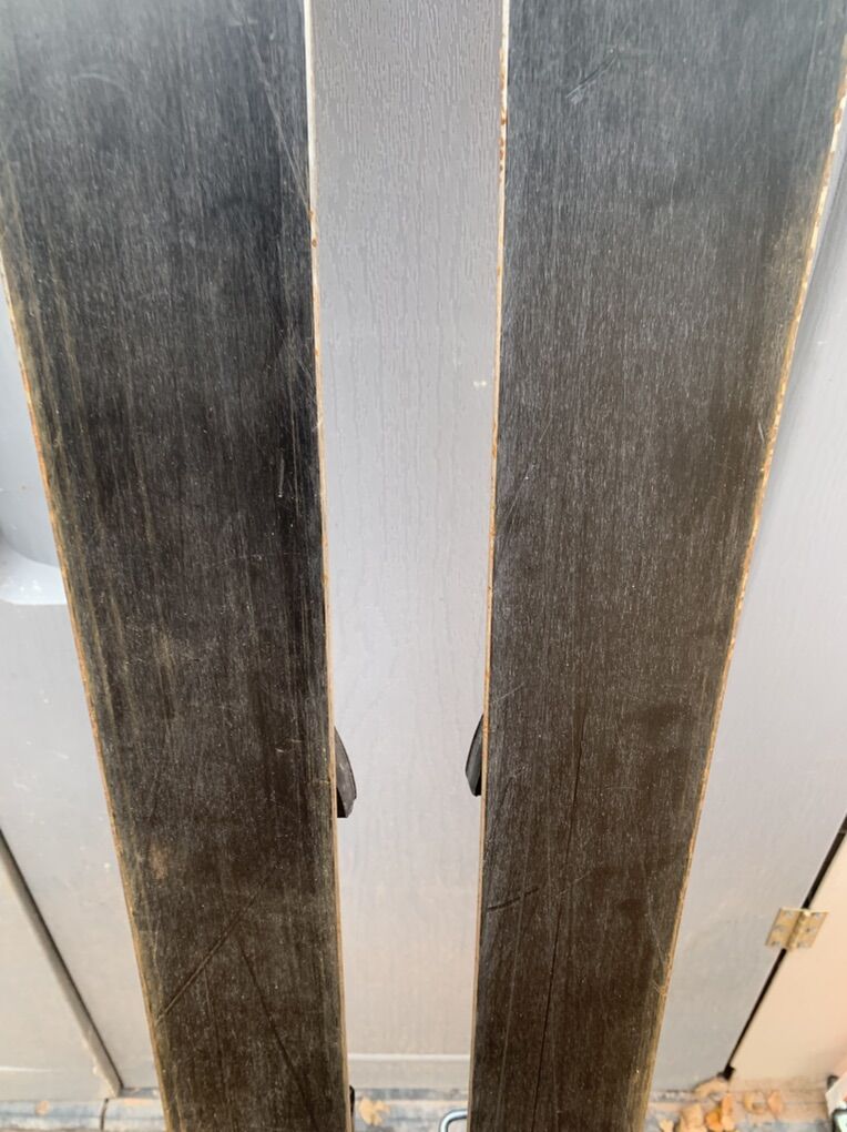 Skis have very rusty edges that need tuning, but bases are in great shape. Hard water stains on topsheets.