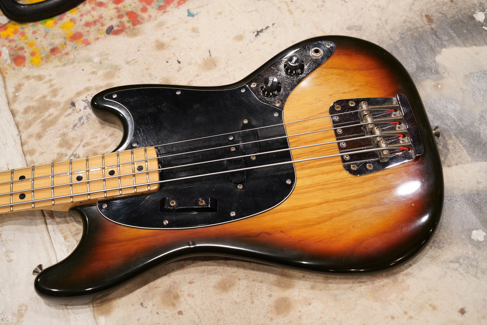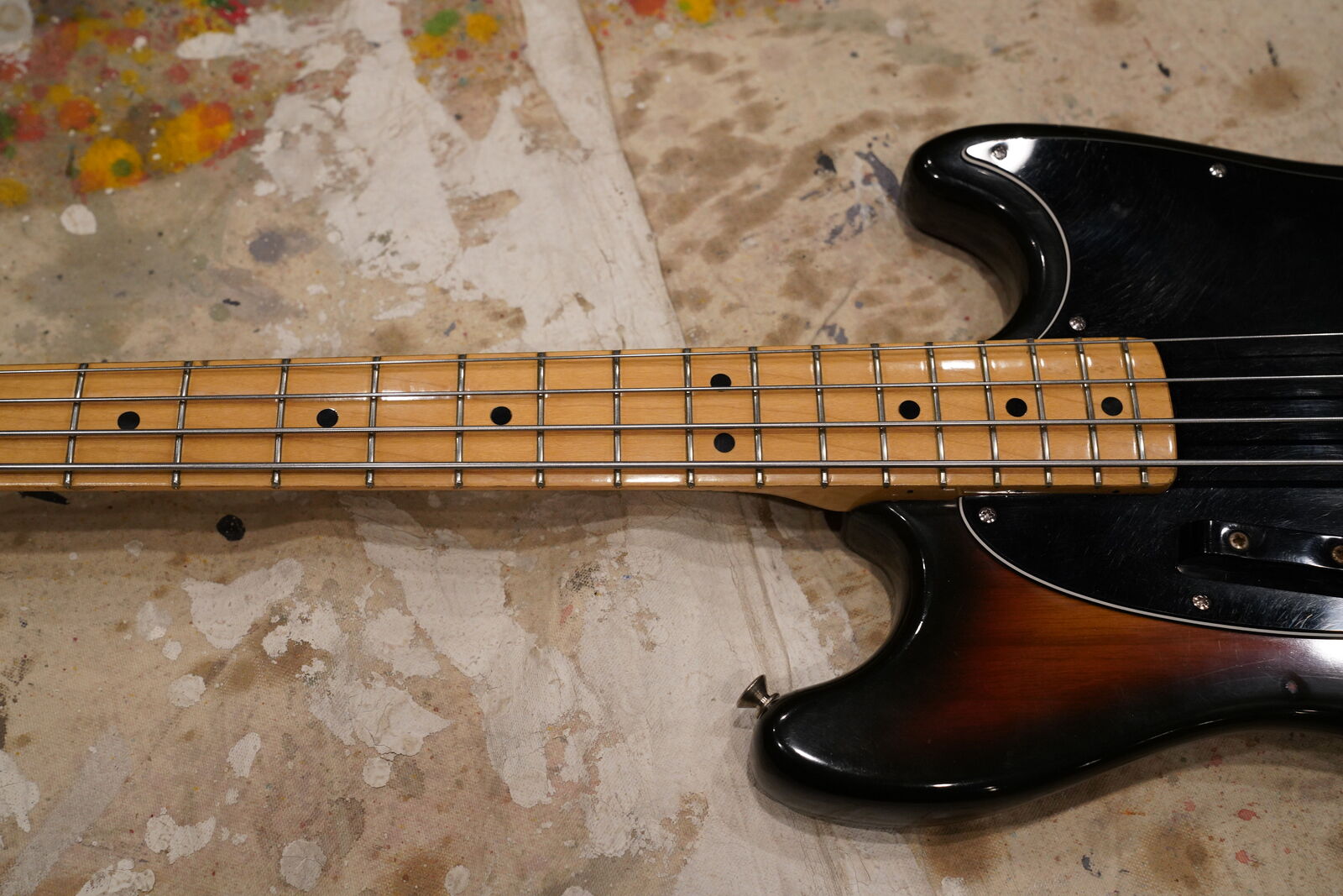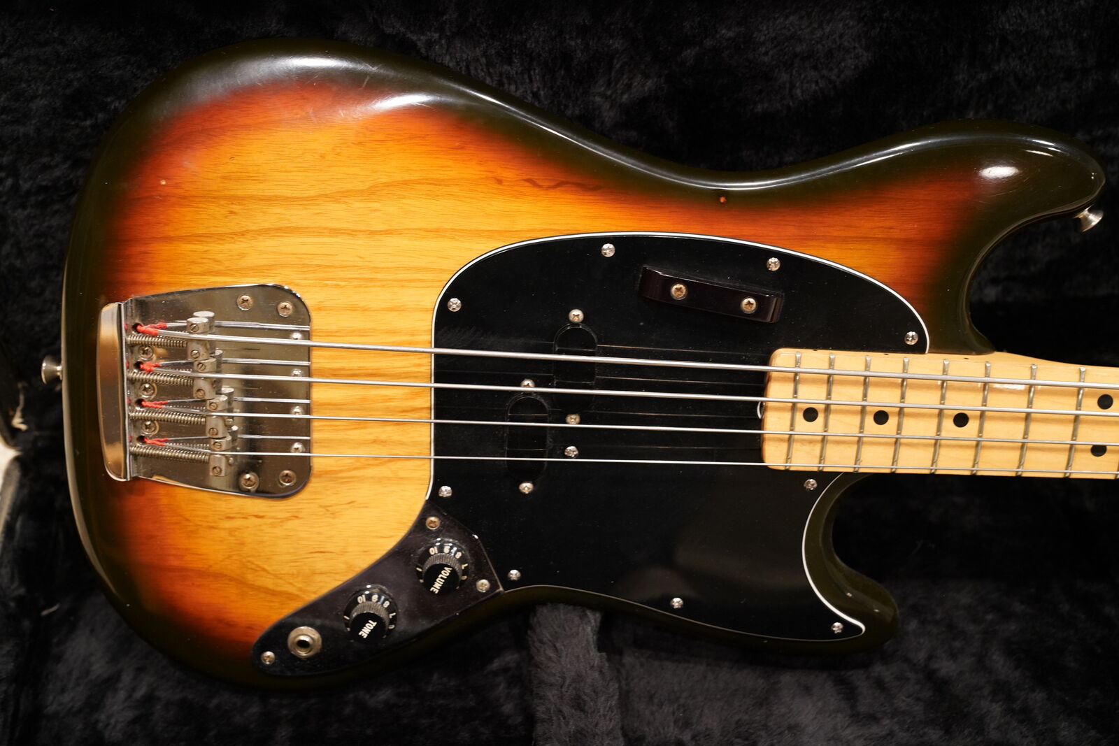 1978 Fender Mustang Bass in Sunburst finish with maple fretboard.