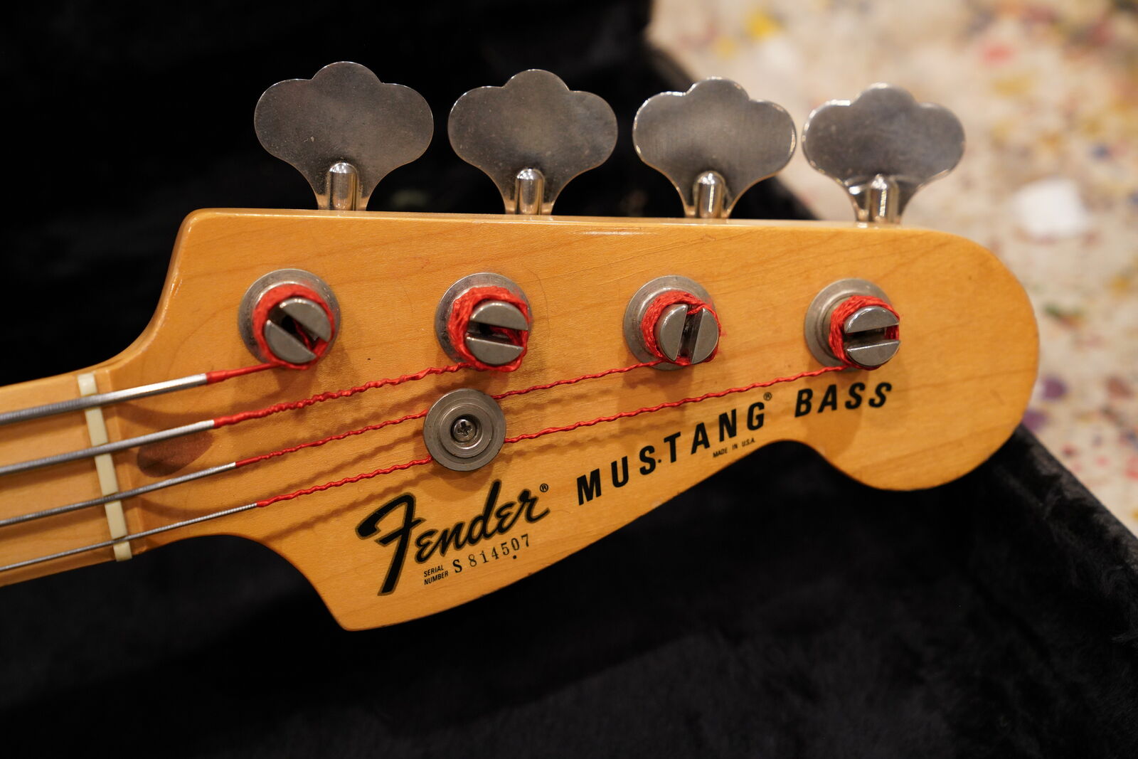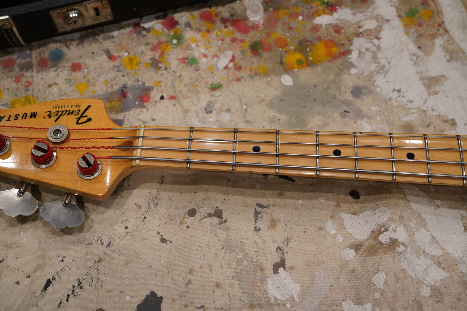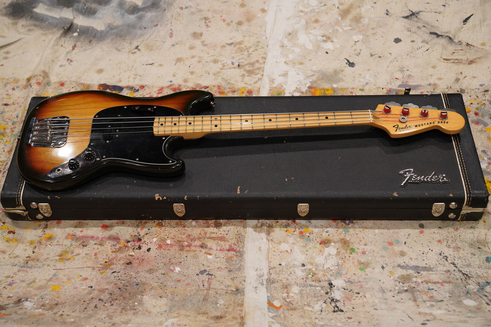 1978 Fender Mustang Bass in Sunburst finish with maple fretboard.