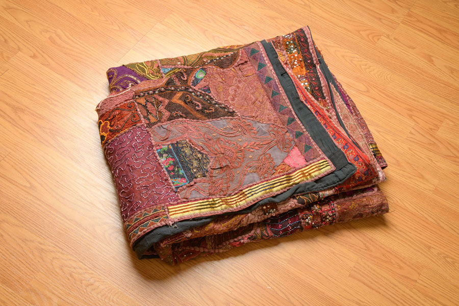 Breathe life into your space with this stunning, one-of-a-kind vintage Indian patchwork tapestry! Handcrafted by skilled artisans in the vibrant regions of Rajasthan or Gujarat (likely Kutch or Banjara tribal style), this wall hanging is a masterpiece of recycled folk art. Pieced together from colorful, upcycled saris, lehengas, and traditional embroidered fabrics—each patch tells a story of India's rich textile heritage. Imagine the whispers of village weddings and daily rituals woven into every thread!