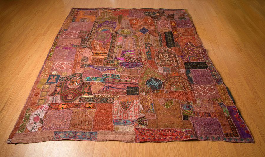 Vintage Indian sari tapestry, boho wall hanging, Banjara embroidered textile, Kutch mirrorwork art, recycled patchwork quilt, large bohemian decor, ethnic folk art, Rajasthan Gujarat hanging.