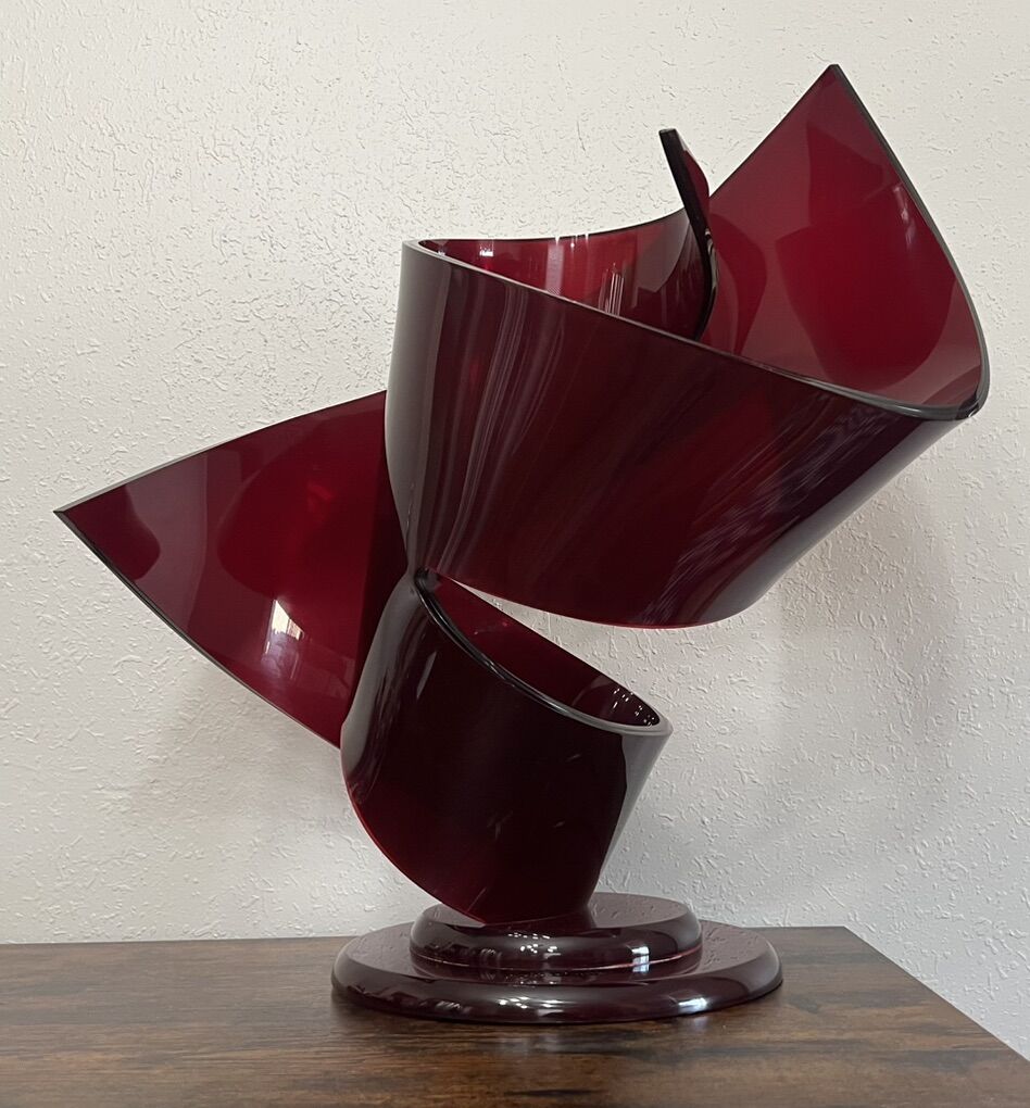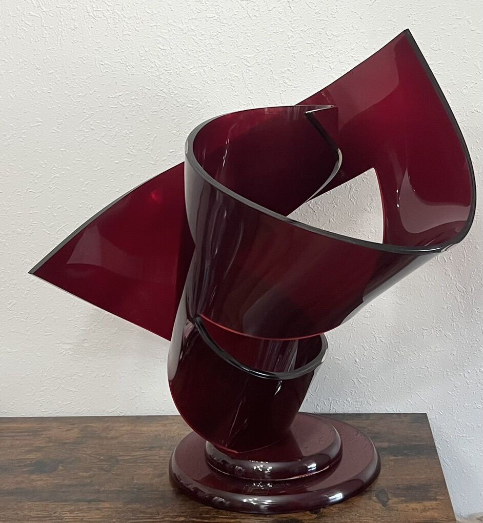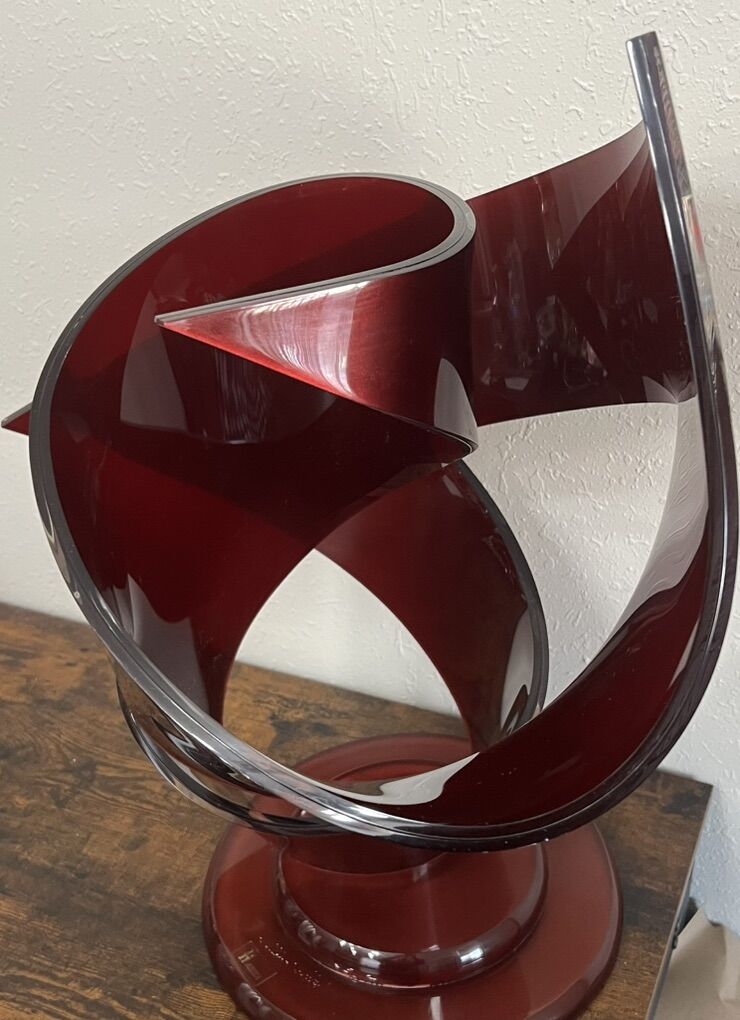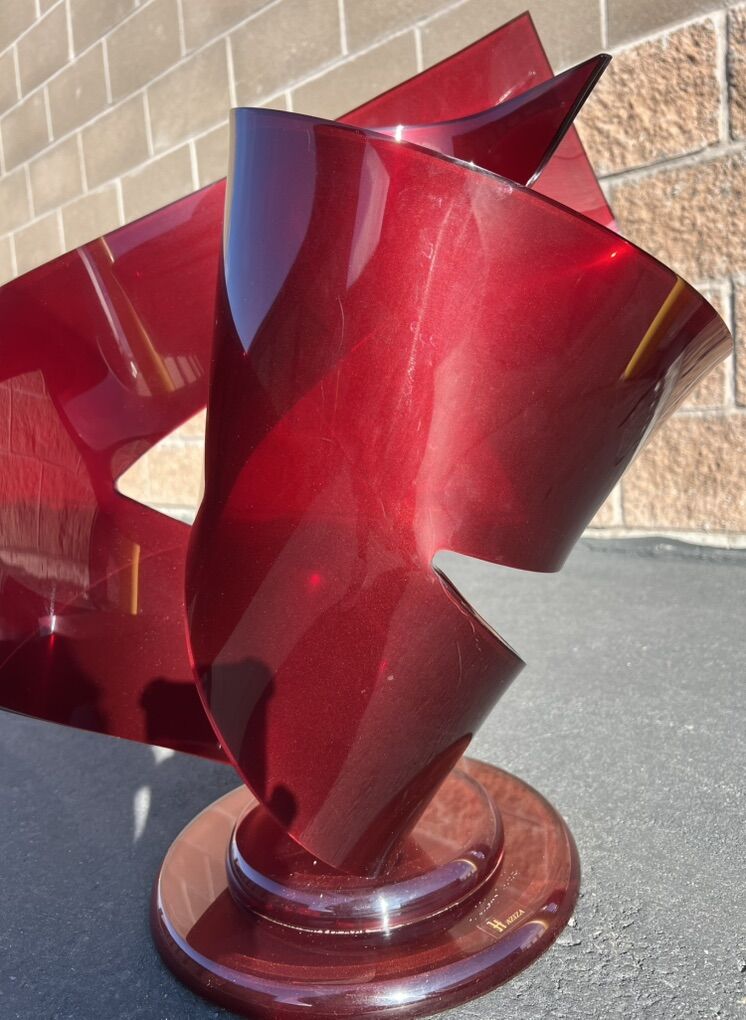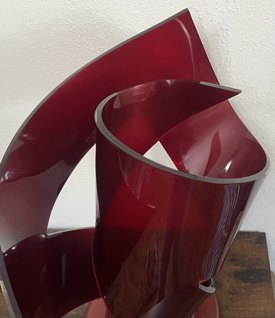 Sugarhouse This is so eye-catching. Photos do not do justice. Has a little bit of a shimmer in the acrylic/lucite. It’s in good condition, but does have a couple of scuff marks. And also some Nick’s down by the label on the base. I’ve shown photos inside and outdoors. But so much more stunning in person. Feel free to Google the artist. There’s so many cool sculptures. 23.75” tall x 20.5” widest. Base diameter is 11.5”. Cash, Venmo Text is best