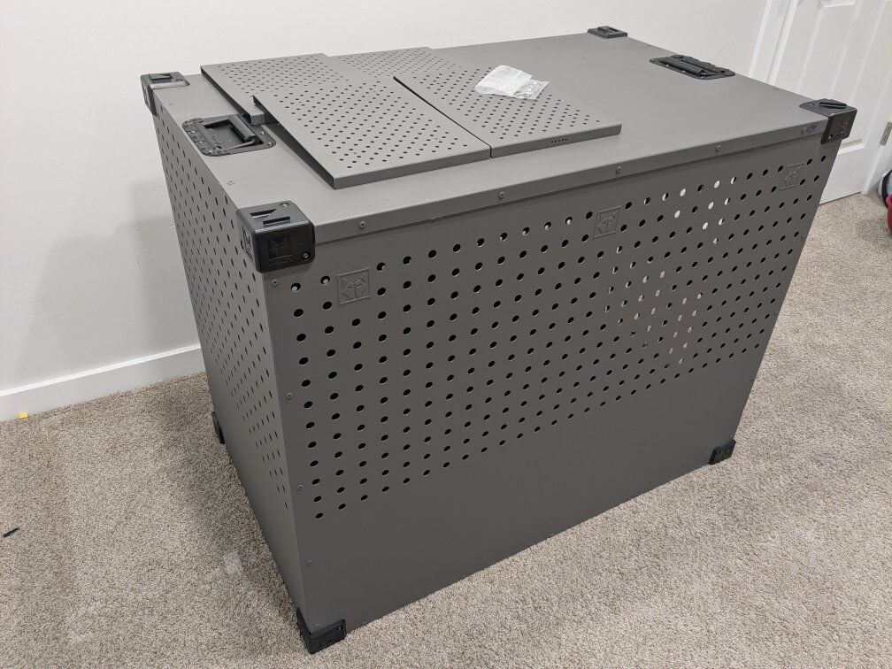 VenmoHigh Anxiety Dog Crate from Impact Crates. This thing is a beast. We purchased it for our adopted cane corso who had a lot of anxiety when we would leave. She destroyed a wire kennel so we got this. We ended up not using it very much since we are almost always home. she scraped, clawed and bit at the inside a bit (see pictures) but the kennel is still strong. It comes with the anxiety front panels that you can add or remove.