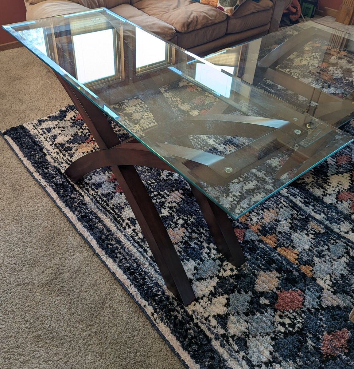 VenmoSet of two glass topped tables with modern style wood bases. Great condition.
