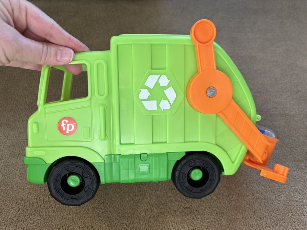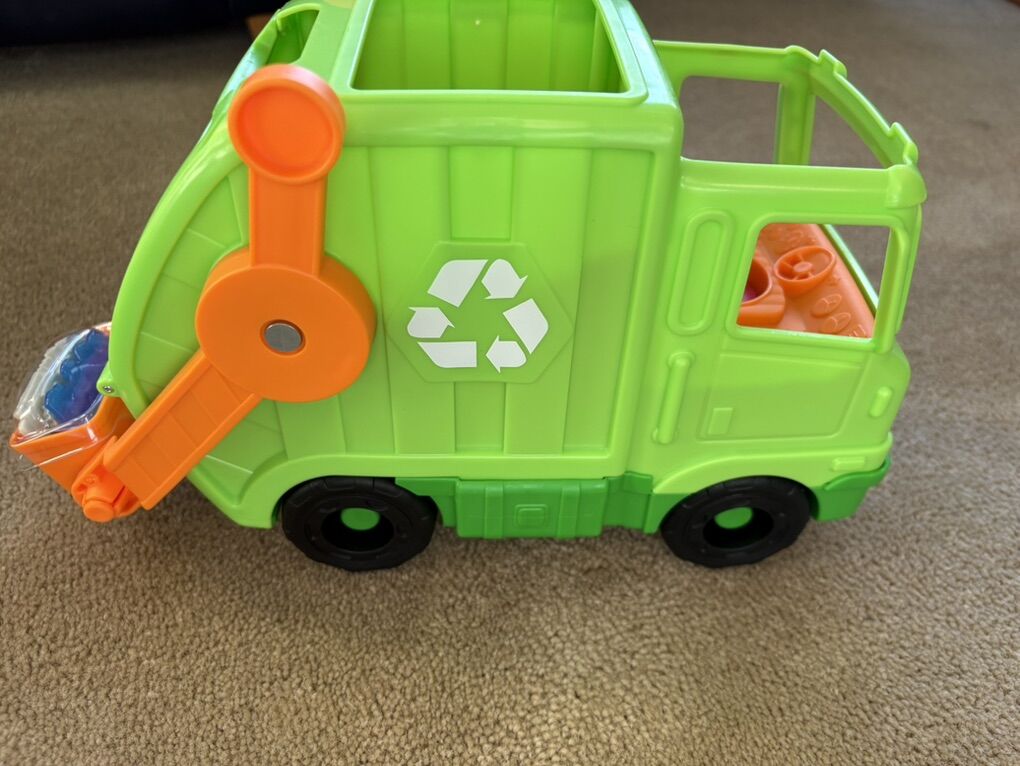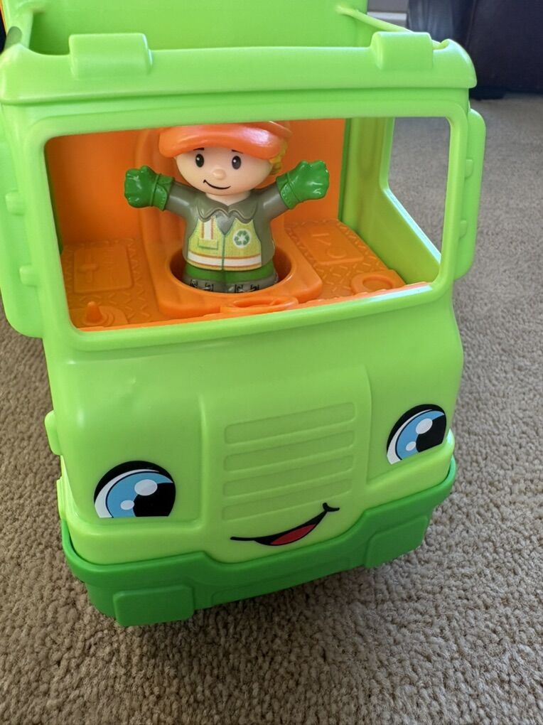 NEW Fisher-Price Little People Recycling Truck. Includes truck (with sounds and music), driver, and recycling items (sealed). New condition. Text only. Cash or Venmo. Discount on multiple items.