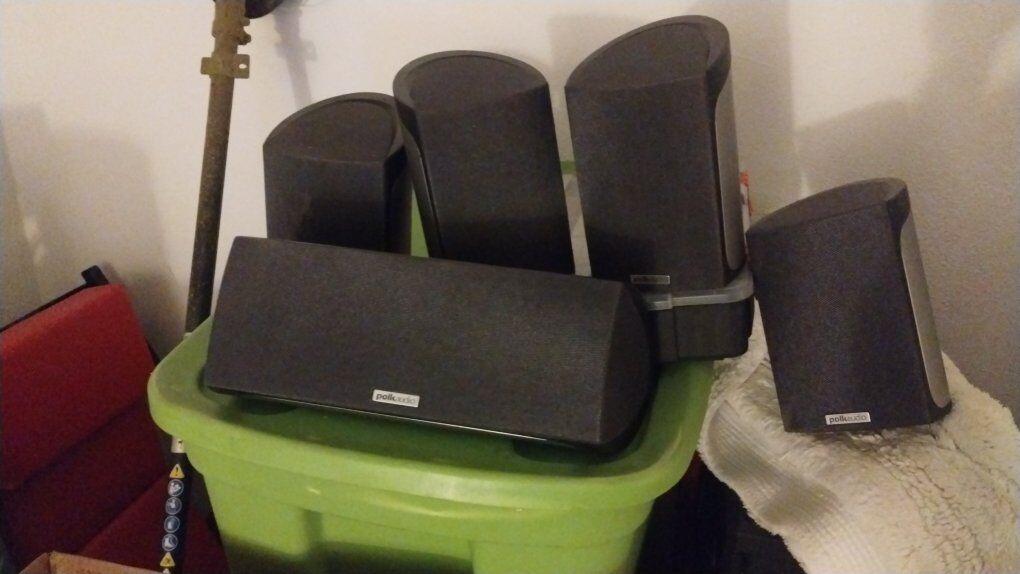 VenmoPolk Audio surround sound... total of 4 rm101 shelf speakers and 1 center speaker and 4 shelf speakers about 4 inch tall speakers, the 10 inch sub i included. They usually sold separately good system just don't have room so wanna sell only asking 75obo.
