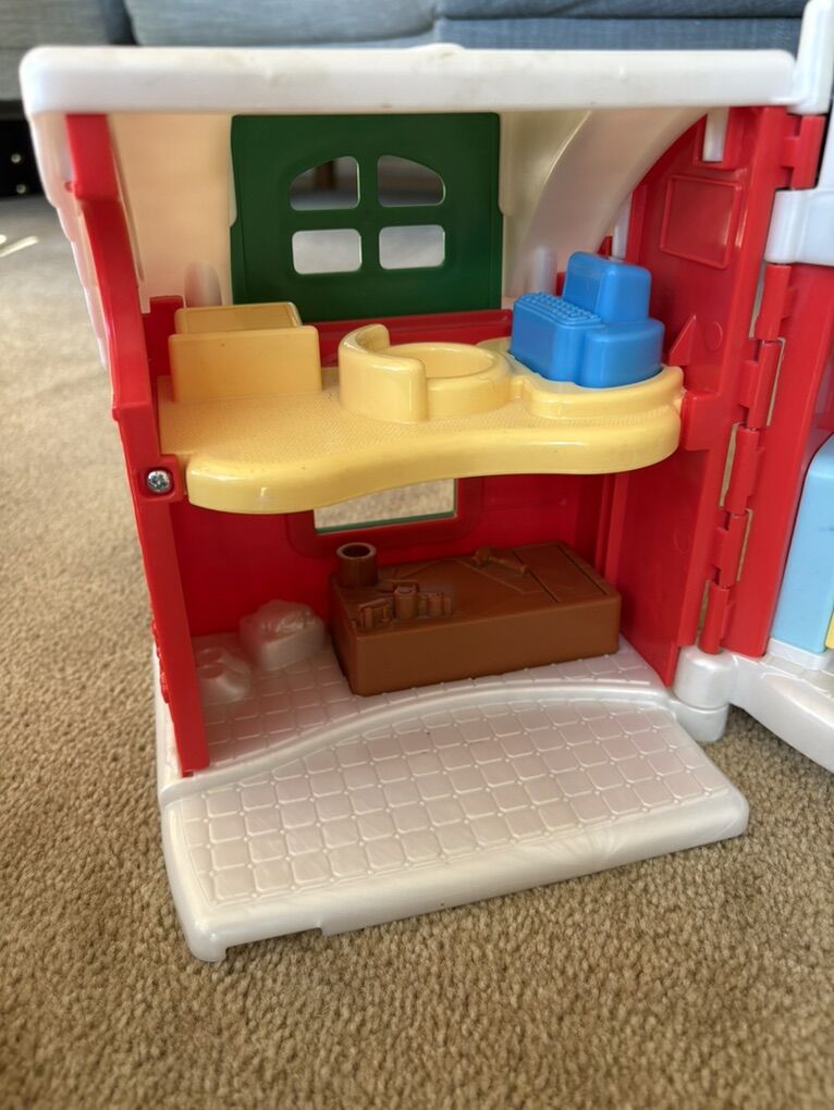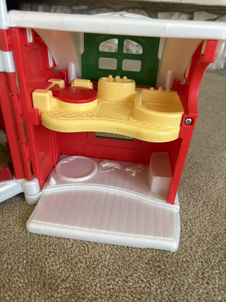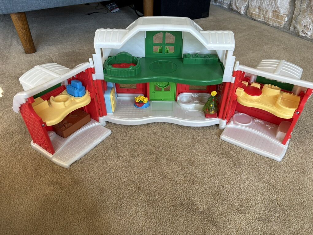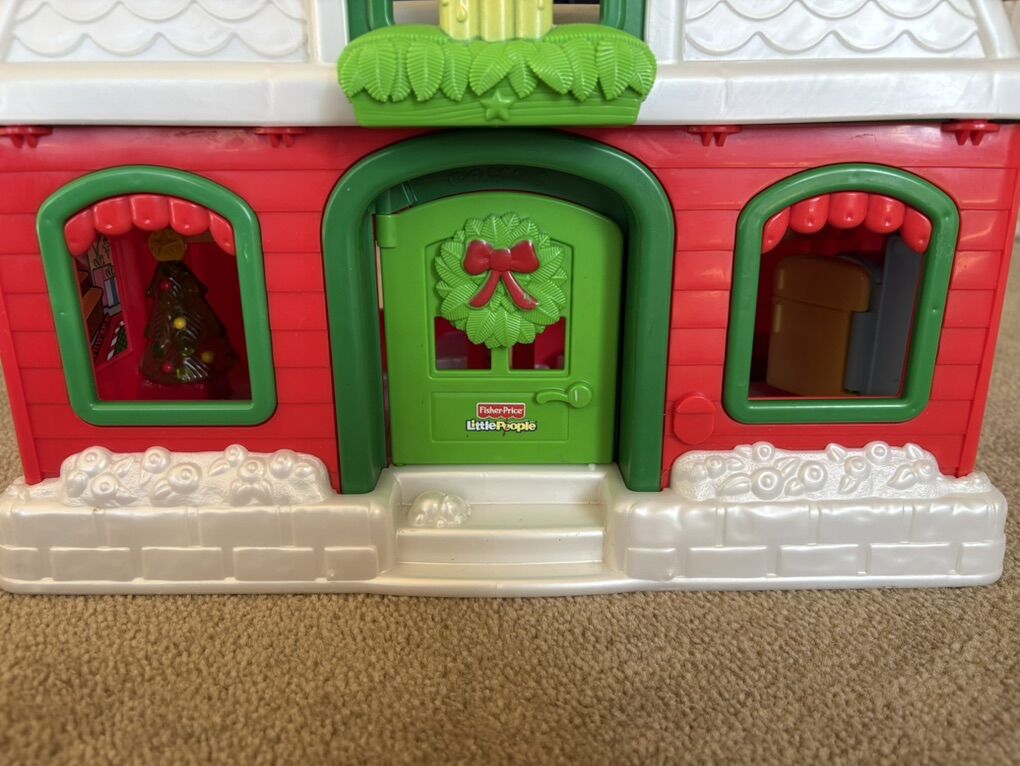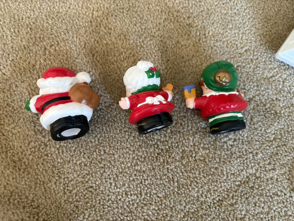 RARE Fisher-Price Little People Santa's North Pole Cottage set. Includes fold-up house in excellent condition, with built-in furniture and sounds. Also includes Santa Claus, Mrs. Claus, elf, and 3-car Christmas train. All in very good condition. Text only. Cash or Venmo. Discount on multiple items.