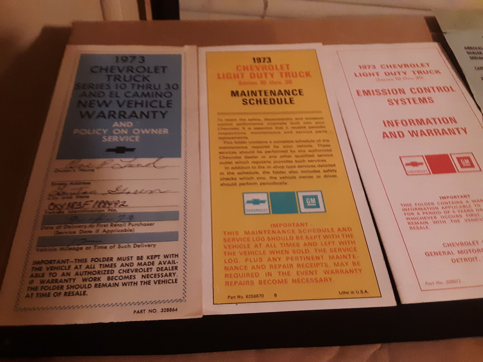 Zelle1973 Chevy Light duty Truck, Blazer, El Camino owners manual with all new car paper work from 1973. New Vehicle warranty, maintenance shedule, emission control systems warranty, 1973 truck arrival condition report, tire warranty card, vehicle inspection report. If you are interested in this item, i could mail it, you pay post. I take venmo, paypal, and zelle. I have 19 years on KSL, so be assured your pakage would be sent in a professional, timely manner. I am in Murray once a week, could arrange pickup there.