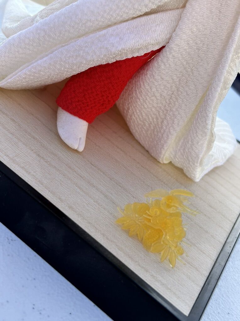 This Vintage Japanese Gofun Bride Doll in a white kimono is a beautifully crafted collectible representing traditional Japanese culture. Handmade in Japan, this geisha maiko doll embodies the intricate craftsmanship and elegance of Japanese artistry. The detailed design and pristine white kimono make this doll a stunning representation of a bride on her wedding day, capturing the essence of Japanese aesthetics and customs. Perfect for collectors or those interested in Asian cultures, this doll is a timeless piece that showcases the rich heritage and artistry of Japan.