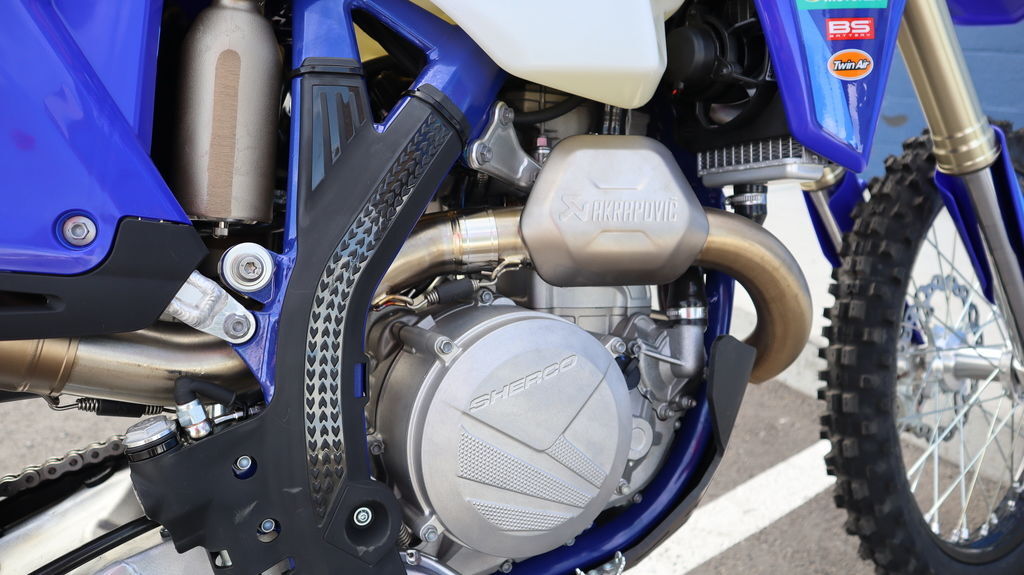 449.4cc DOHC, 4-valve Sherco engine with VITESCO EFI, electric start, lithium-battery and full Akrapovic exhaust for responsive power and race-ready torque