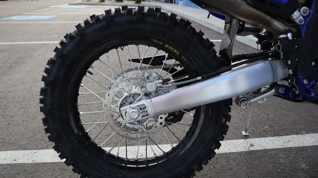 Brembo brakes (260mm front, 220mm rear) with new lightweight Galfer rear disc, mounted on Excel black rims with Michelin Enduro Medium tires