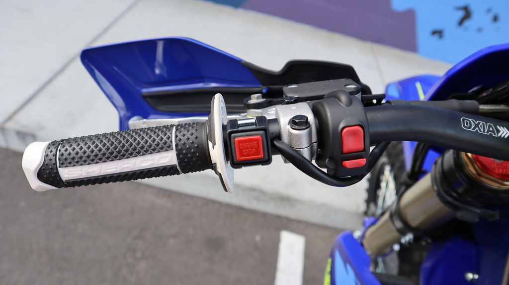 New Galfer rear disc, mud-resistant Nilos seal at steering stem and updated blue graphics—race-ready durability straight from the factory