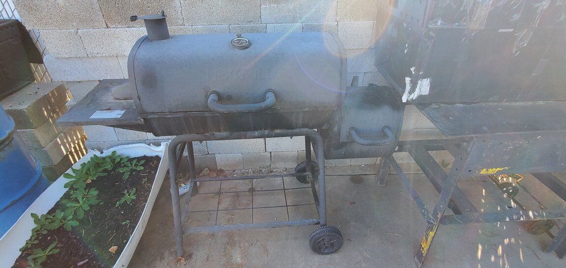 This is a charcoal/smoker grill. We just found one we like better. Very light and easy to move around. Minor wear. OBO