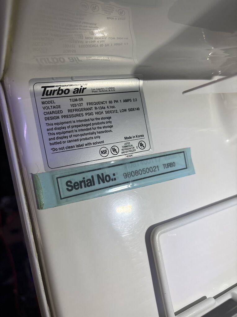 Turbo air refrigerator very nice and clean good working condition for only 75 bucks cash in person