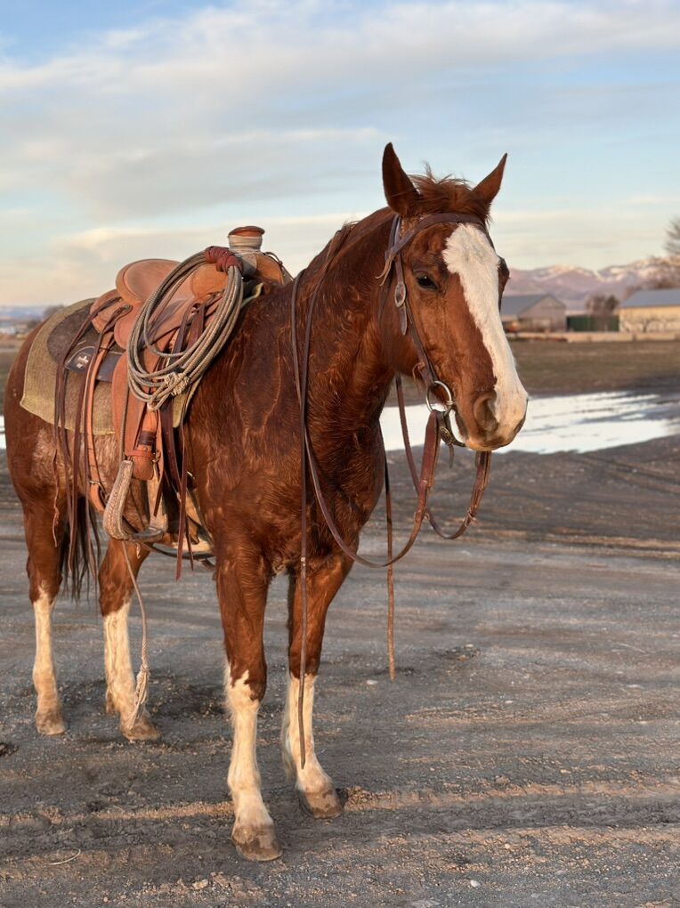Experience & Training: Worked and gathered cattle Used with a roping dummy Enjoys cow work Trail rides quietly Participated in 4H activities, including trail class and cattle work Been in parades – not spooky or watchy Handles time off well and stays consistent He is exposed, confident, and well-rounded, with a solid foundation already in place.