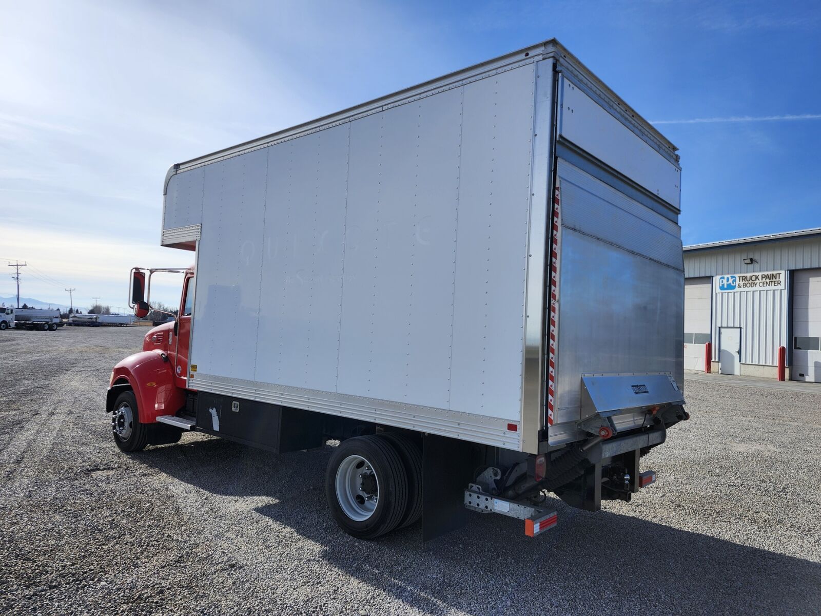 14' x 102" x 99" Van box with 36" attic, Fold up lift gate, Curbside door, Wood floor, Allison 1000 transmission, Paccar PX7 200HP, Reyco spring suspension, 109" Cab/axle, Hydraulic brakes, Non-CDL truck- 19,500 GVWR, 7940 FA- 11,500 RA, 19.5lp tires, 4.56 ratio, A/C, Cruise, Power passenger window, Tilt wheel, Clean California truck!! 2014 Peterbilt 325