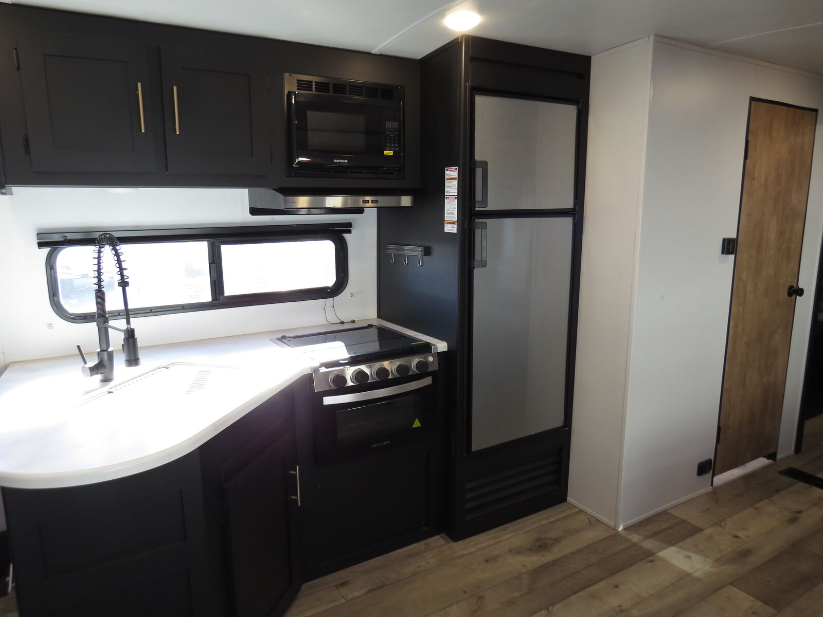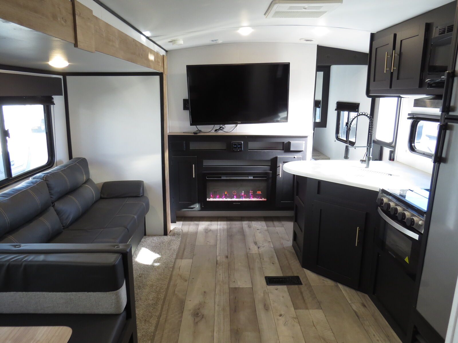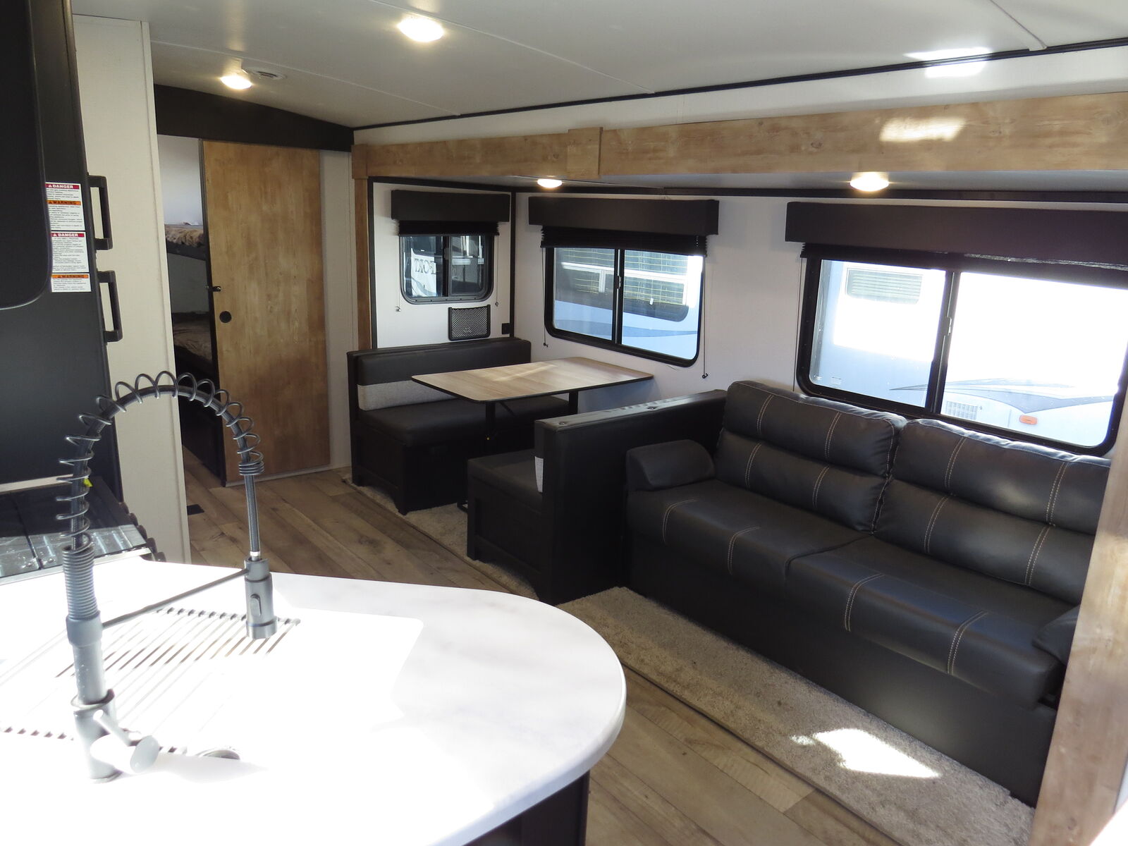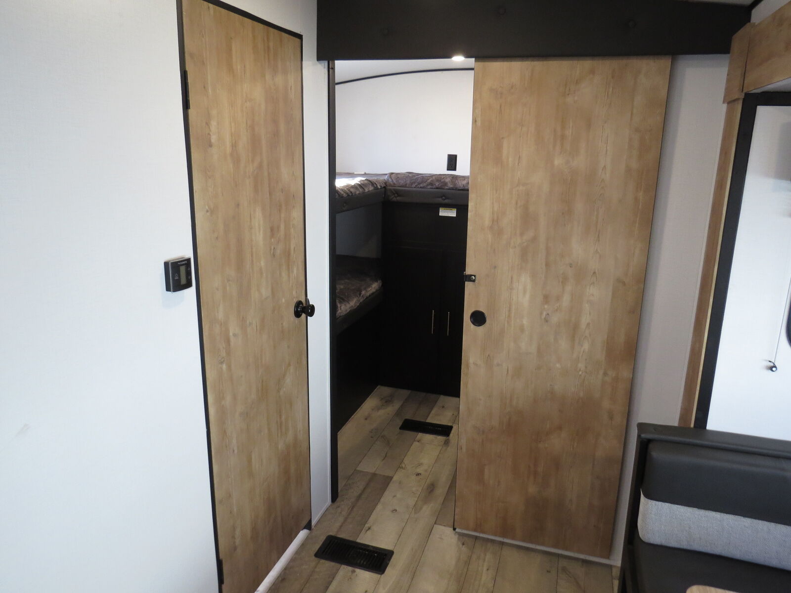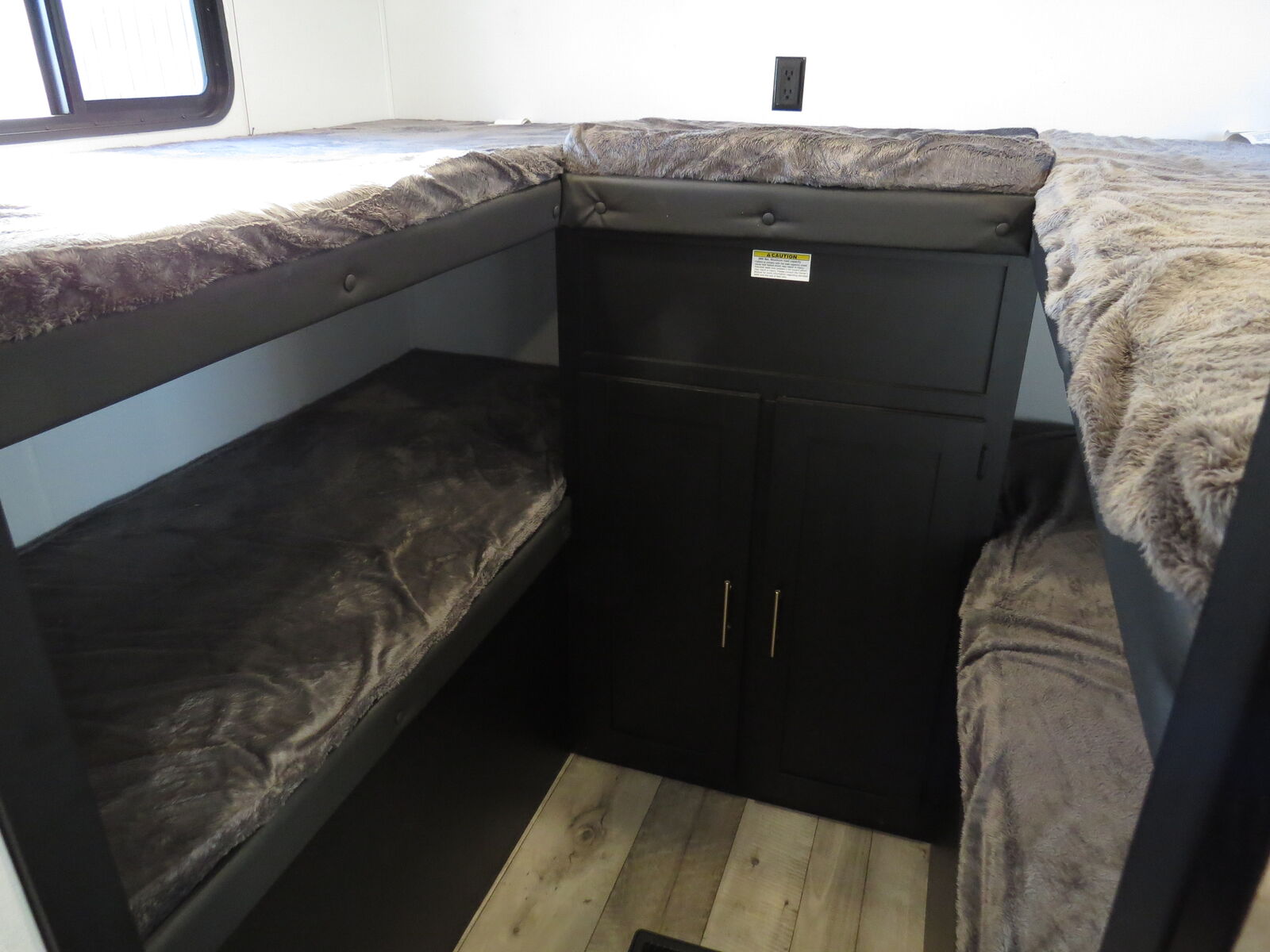 4 Rear Bunks, SOLAR!, Booth Dinette & Couch Slide, Front Queen bed!, Lots of storage! Side Kitchen, Full Bathroom, Couch & Booth Dinette Make down to beds, A/C unit and Heat.