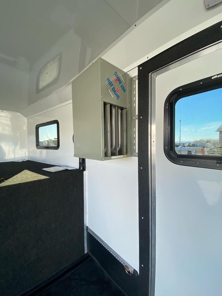 Inside has driers, storage, fold down benches, has fuel doors, and is heated.