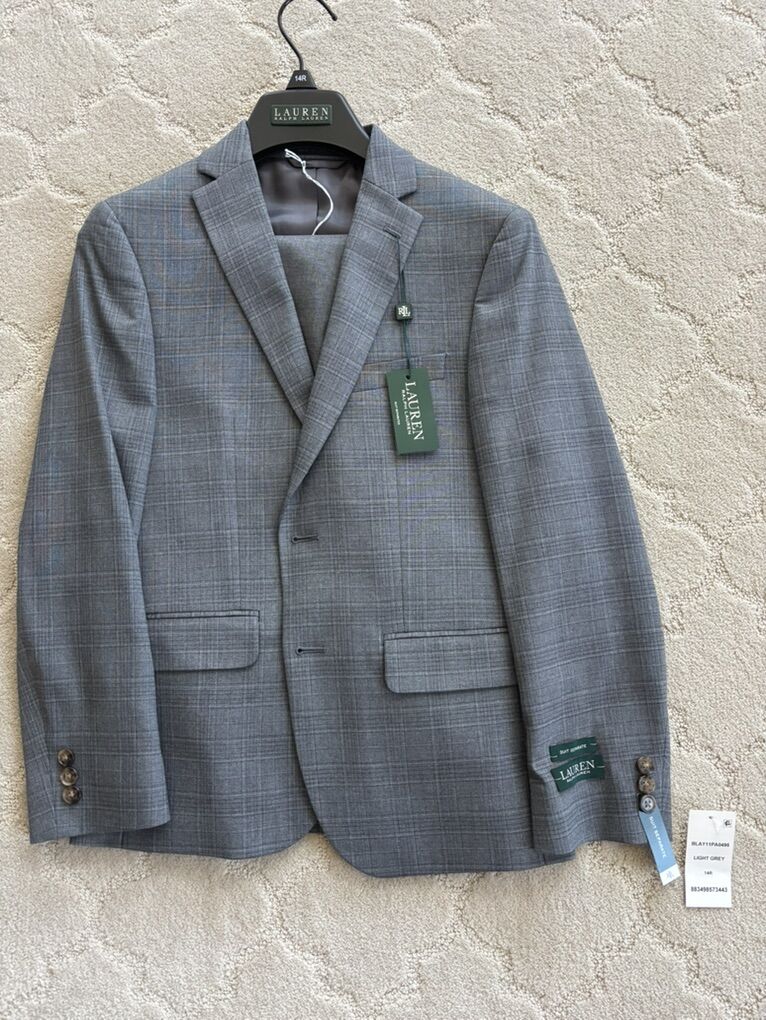 ApplePayRalph Lauren Boys size 14R (27” W) Gray Plaid Suit (jacket is plaid, matching pants are heather gray), jacket is new, pants gently used excellent condition