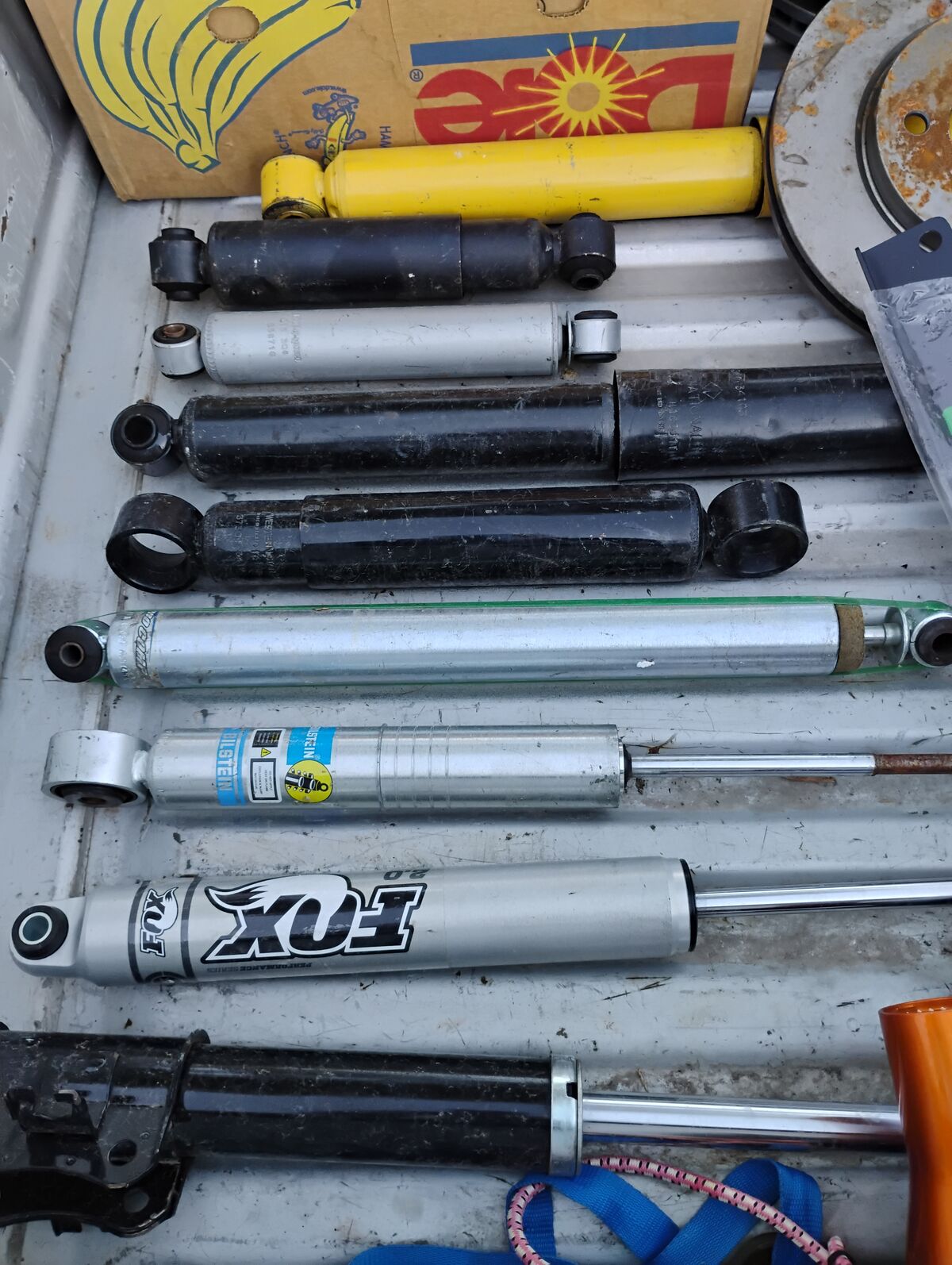 Selling all shocks for cars and pickups and trucks all them for $40 not splitting them up this time not going to be playing games I'm only here for about a week and a half and if you don't come get them I'm going to delete the ad again and say the health problems . This is a good deal for all of them that's even cheaper but you must buy all of them for the $40. I will be back on December 30th and then back leaving on the January 15th roughly got to go back and deal with a state in my mom's in California and I'm back here and I've got medical problems here I'm seeing so don't hesitate to come on out. They're all at the mesquite car show today Friday and then tomorrow we'll be moving it down to Pomona car swap meet and then to Turlock whatever is left California the end of the month the fox shock was sold for $20