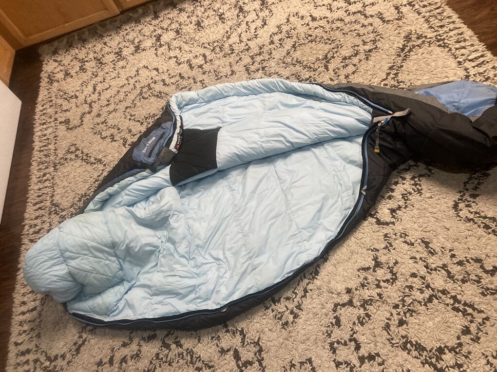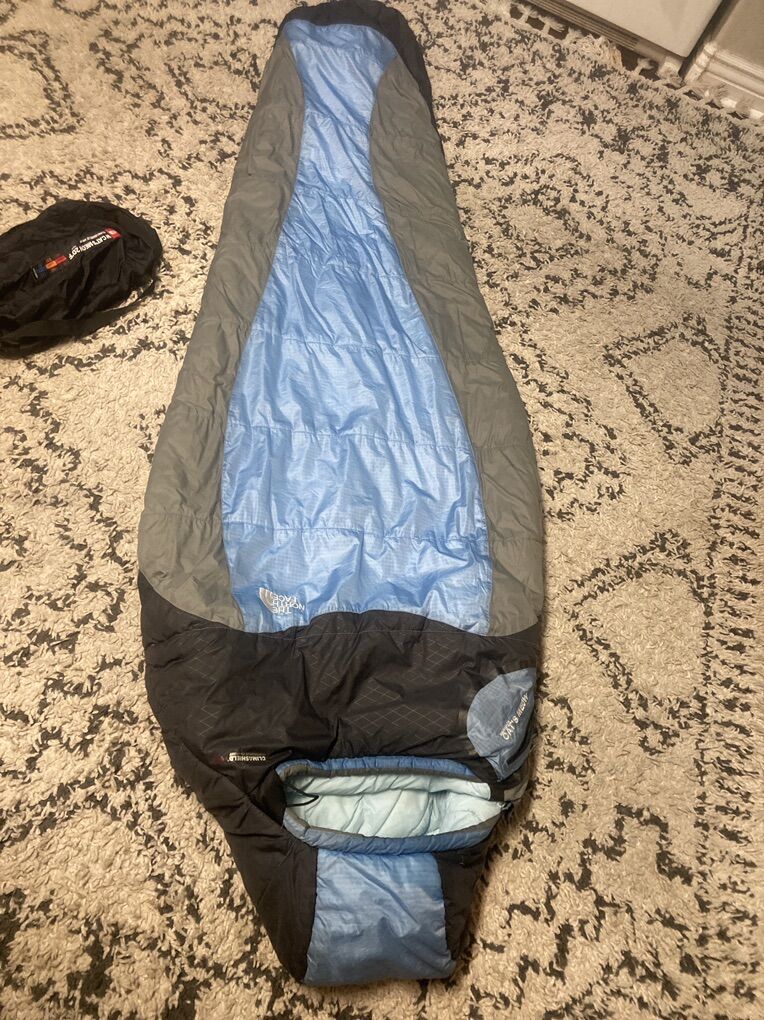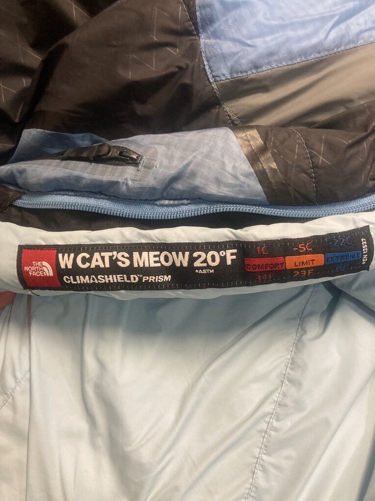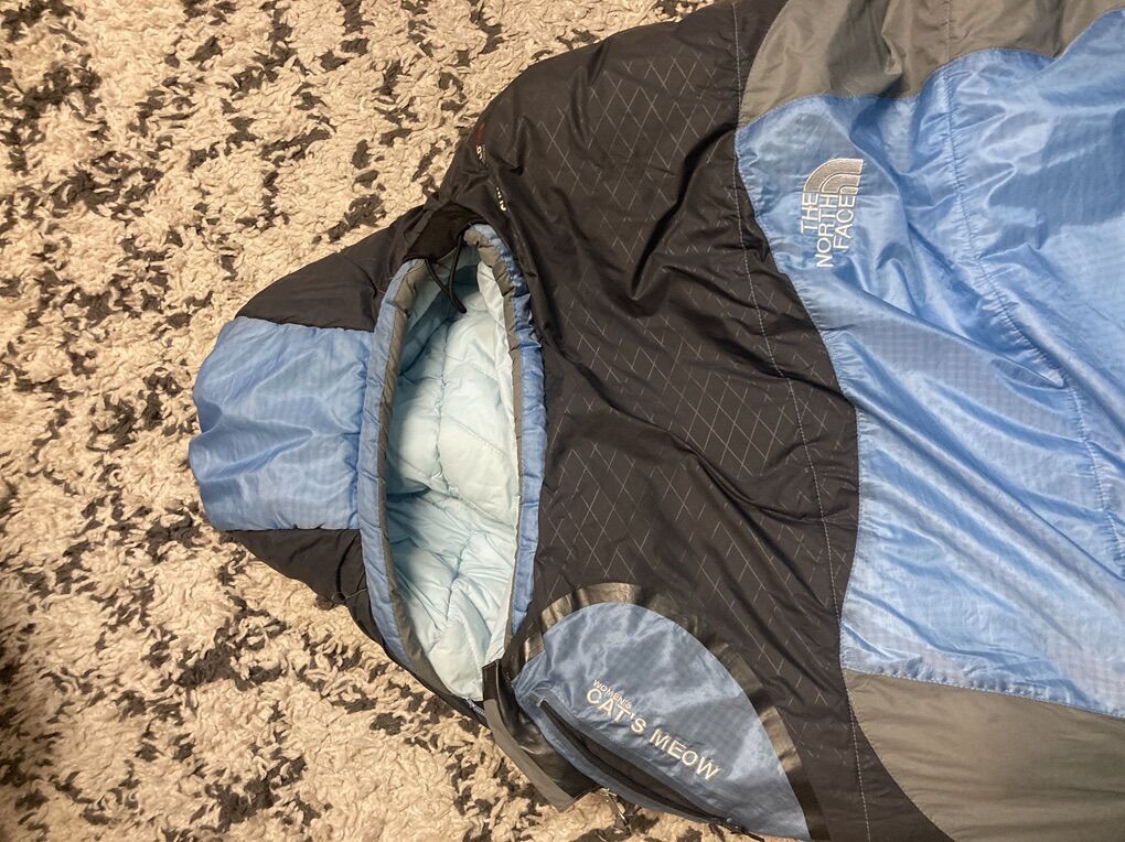 Northface Womens Sleeping Bag Cats Meow 20 D Long No rips or tears great condition pet free smoke free Stuff sack included Price is firm