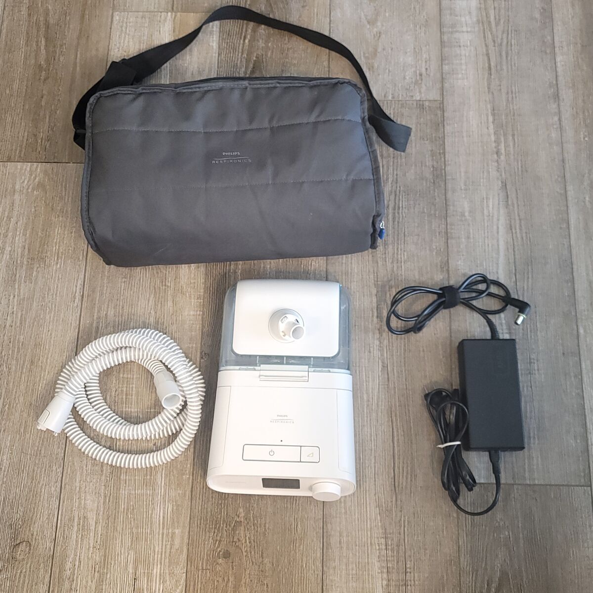 Respironics DreamStation CPAP with bag, power adapter, and hose in good used condition.