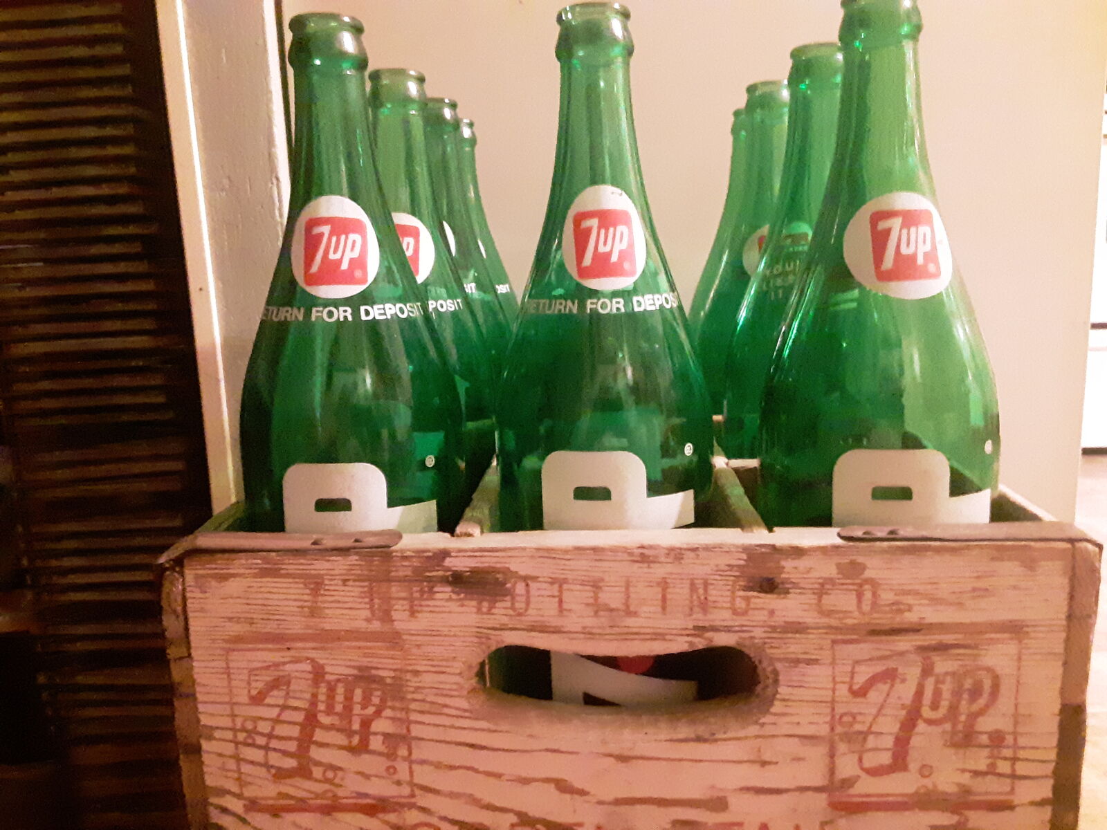 Zelle1950's 7up Seven up wood crate with vintage soda pop bottles from Ogden Utah 7up. The oldest bottle is 1957 the rest are 1960's to 1970's all in great condtion 12 total 28 oz bottles. Just looking to down size collection, hit more by seller check out my other vintage items for sale. Will consider offers. I am in Murray Once a week, could arrange pickup there. I take venmo, paypal, and zelle.
