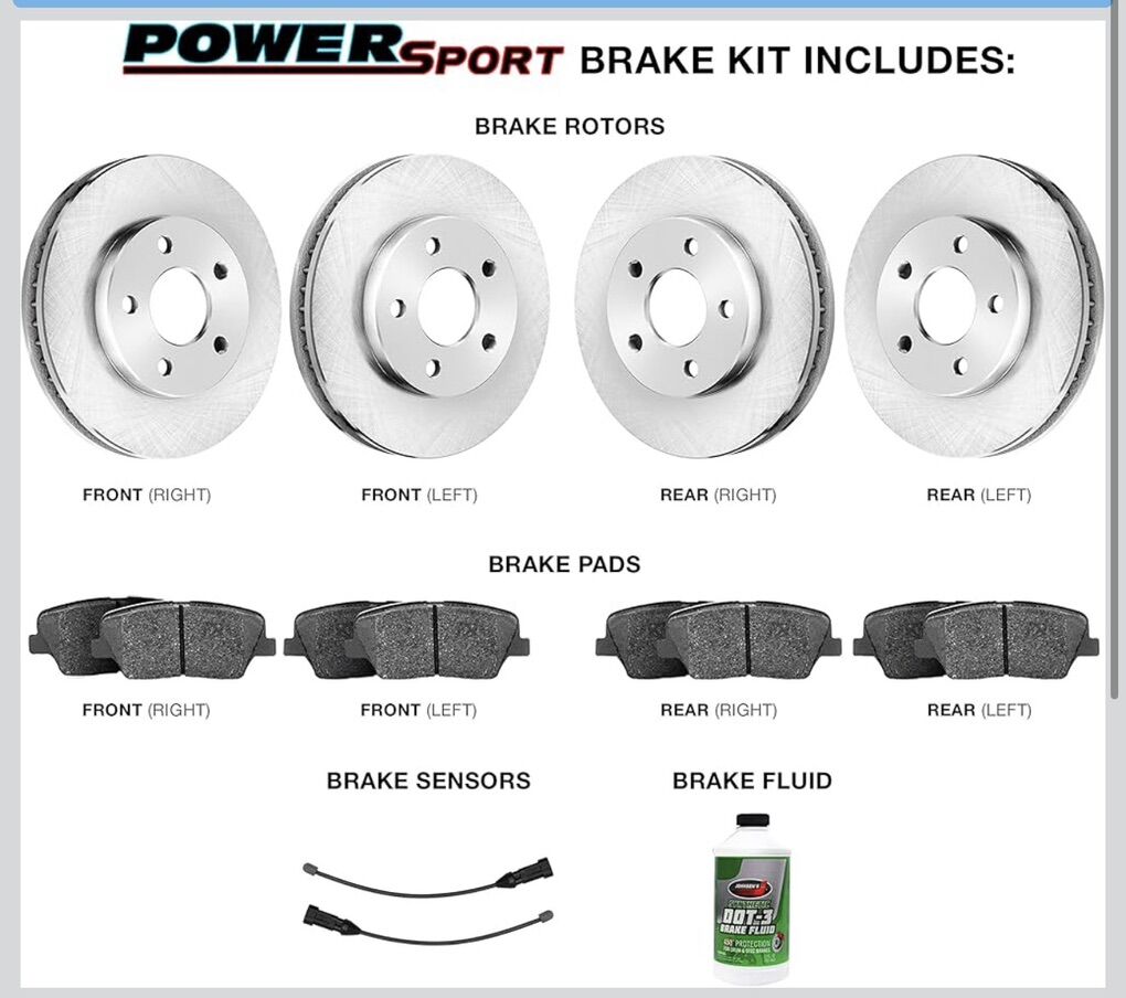 Brand Power Sport Vehicle Service Type Car, Truck, Suv Year 2022 Assembly Required No Automotive Fit Type Vehicle Specific Fit Manufacturer Power Sport Simplicity: Brake kit comes packed with (4) high performance brake rotors, (8) ceramic brake pads and brake sensor Direct Fitment; Ready to Install; No Modification Needed Advanced Ceramic Formulated Pads for Low Dust and Low Noise Thermal Scorched to Promote Fast & Easy Break-in Pads are Shimmed to Absorb Vibration and Eliminate Noise