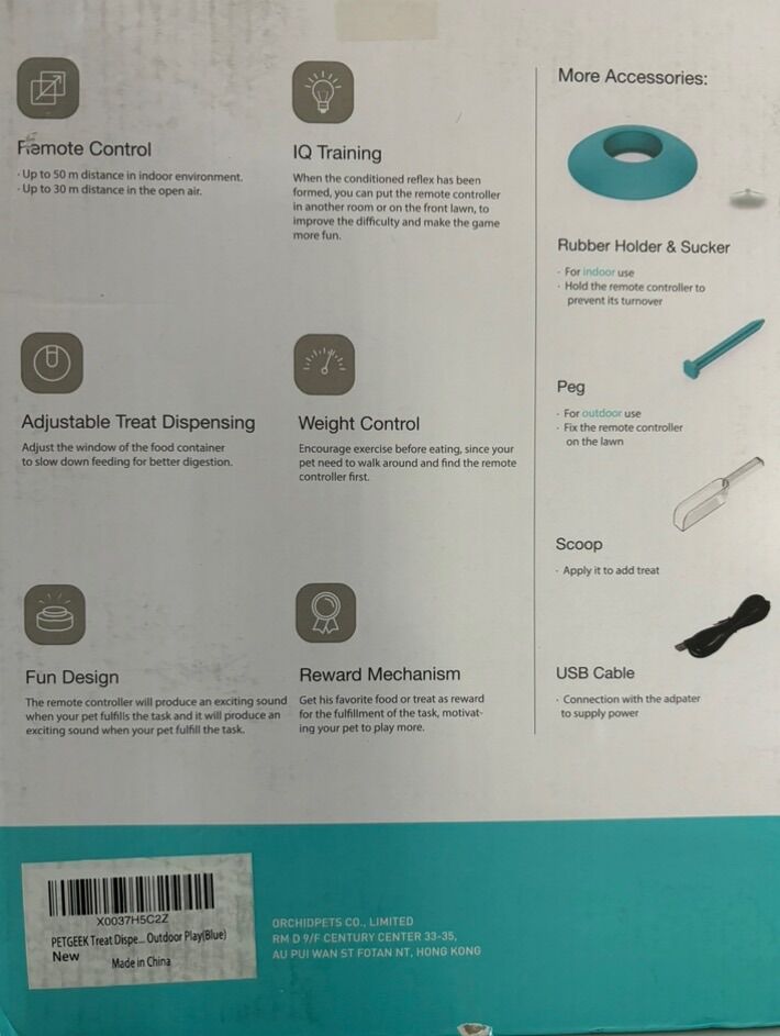 ApplePayPetgeek automatic dog treat dispenser for training, only used twice, thoroughly cleaned, excellent condition. Not using because have two dogs and one eats all the treats.