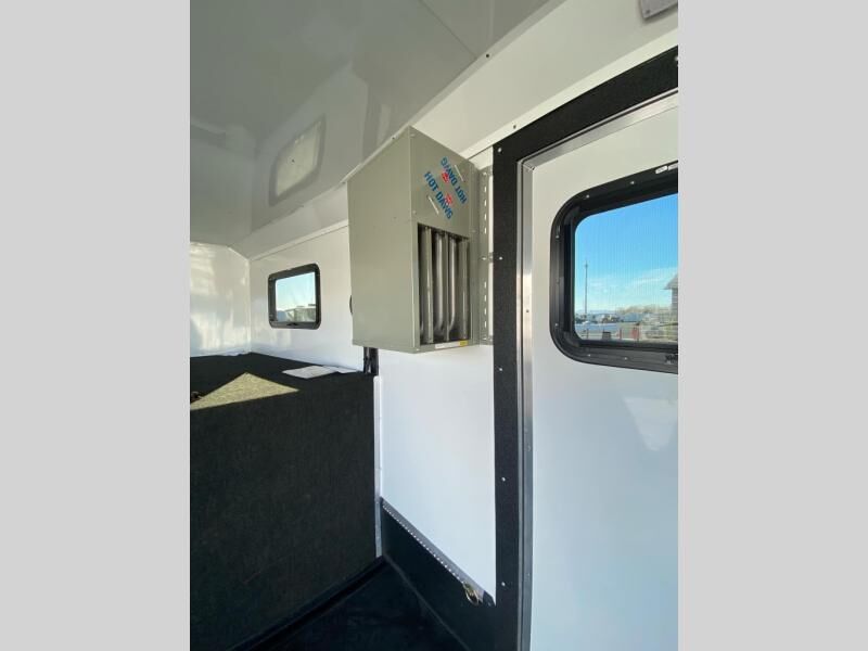 Inside has driers, storage, fold down benches, has fuel doors, and is heated.