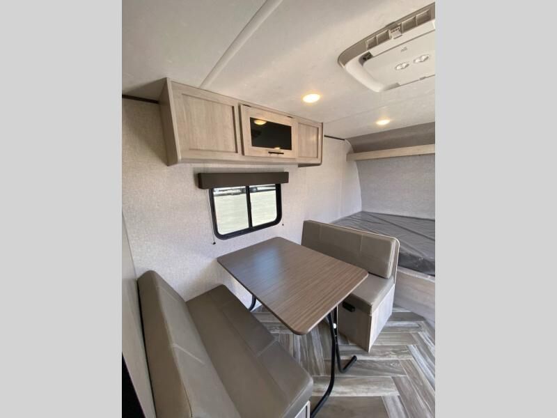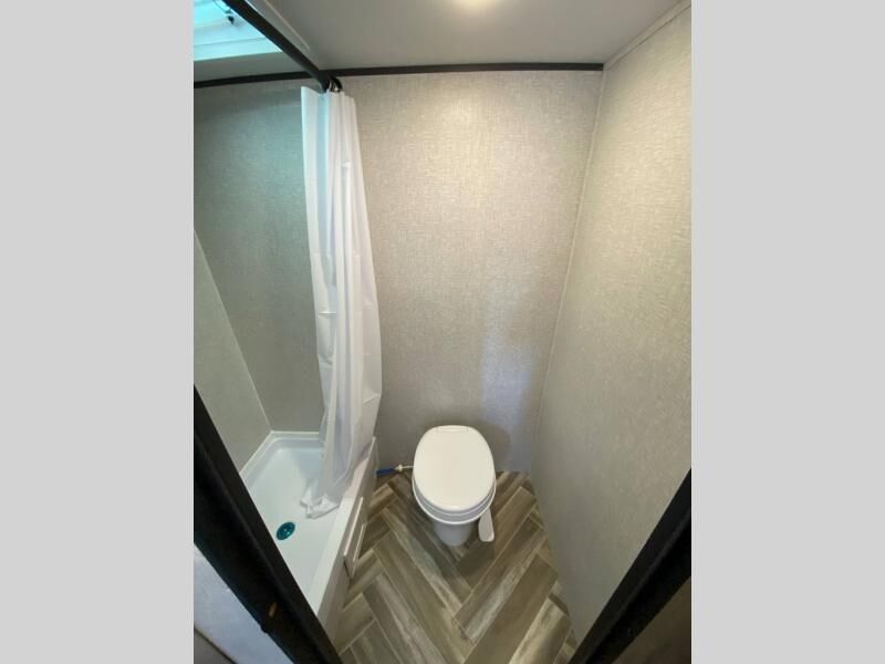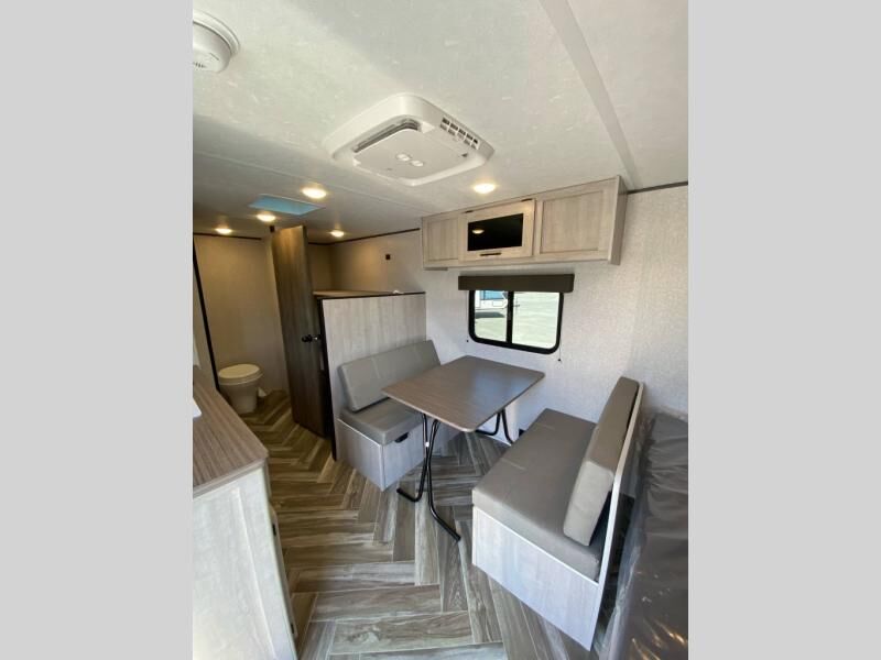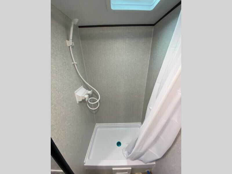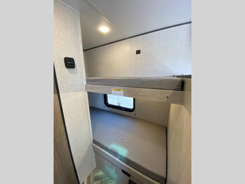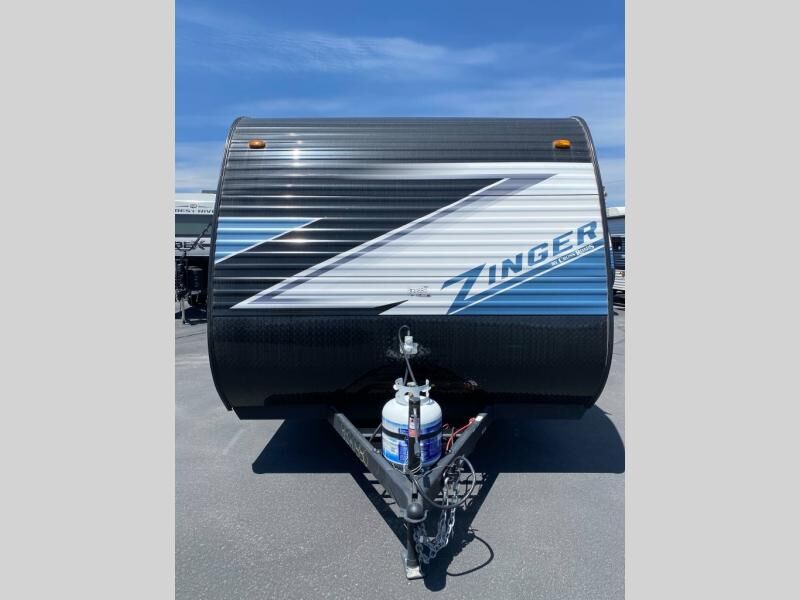 This Zinger Lite travel trailer is perfect for your next family vacation or weekend at the lake with friends. With room for five, this unit gives you the space you need to pack up the kids and the dog and get ready to hit the road! With an RV queen bed and bunk beds, everyone will have a place to sleep. The 38" booth dinette can comfortably hold one to two little ones or an adult guest. Use the two burner range to make a home-cooked meal and easily store your leftovers in the 12V refrigerator. Enjoy extra privacy with a rear corner bath that includes a 30" x 36" shower. This unit features multiple overhead compartments, so bring along the board games and other valuables from home.