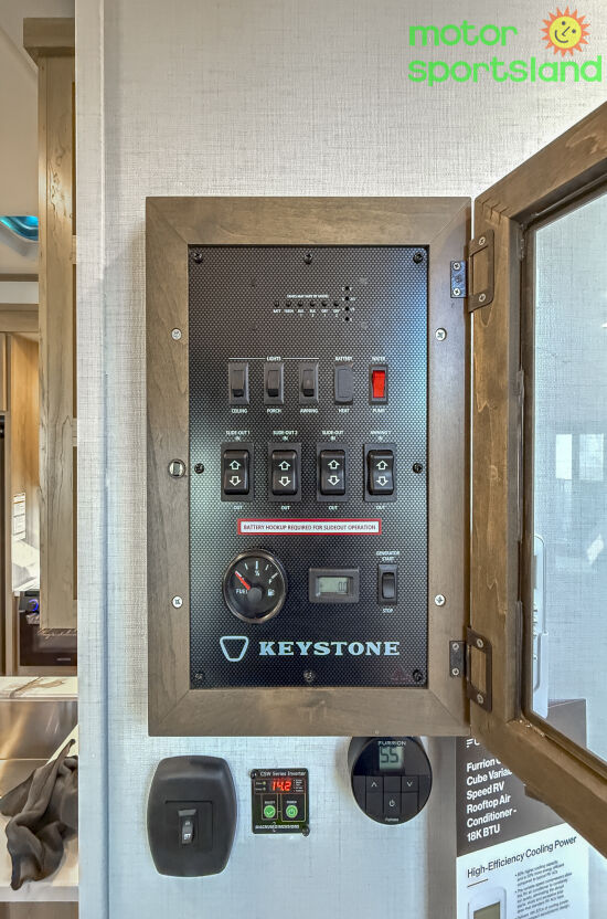 Unmatched Comfort: Spacious interiors with plush seating and residential-style furnishings ensure you feel right at home, no matter where the road takes you. Luxury at Every Turn: Premium finishes, modern appliances, and ambient lighting create an upscale atmosphere for ultimate relaxation. Family-Friendly Design: Multiple sleeping areas, including a private master suite and bunk options, provide ample space for the whole crew to unwind. Advanced Technology: Equipped with state-of-the-art systems for seamless control of climate, entertainment, and more—perfect for tech-savvy travelers. Durability & Style: Built by Keystone, this Fifth Wheel boasts rugged construction paired with a sleek, aerodynamic exterior for effortless towing.