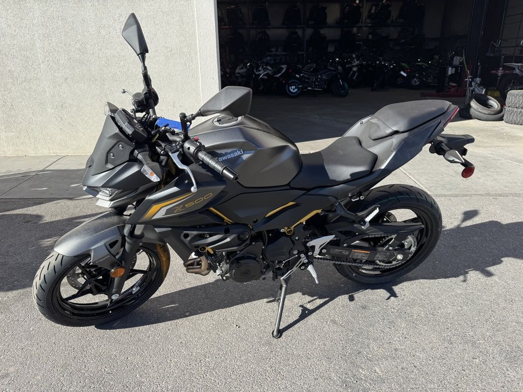 2026 Kawasaki Z500 ABS ALL EYES ON YOU All eyes are on you when riding the Z500 ABS supernaked. With distinctive bodywork and a powerful 451cc engine, this aggressively styled streetfighter is for those who are not afraid to be seen. The Z500 ABS provides the ideal platform for a wide range of riders to put their true colors on display. Features may include: POWER LIGHT. FUN. FIERCE. The Z500 ABS supernaked is packed with potent yet approachable power for a wide range of riders. HANDLING SMOOTH MOVES The foundation of the Z500 ABS supernaked is a lightweight trellis frame, which works with the excellent suspension to deliver a nimble, confident, and effortless ride ERGONOMICS A RELAXED RIDE WITH SUPERIOR COMFORT The relaxed rider triangle accommodates a wide range of riders and riding situations, giving the Z500 ABS a rider-friendly character. The relatively upright riding position and wide handlebars put the rider in the ideal position for active control, facilitating dynamic, sporty riding. STYLING SUPERNAKED STYLE An aggressive front-end design and classic Sugomi™ style, like the distinct crouching stance and upswept tail, give the Z500 ABS supernaked an unmistakable silhouette. ADDITIONAL: Assist & Slipper Clutch Lightweight trellis frame Uni-Trak® rear suspension Available with Anti-lock Brake System (ABS)