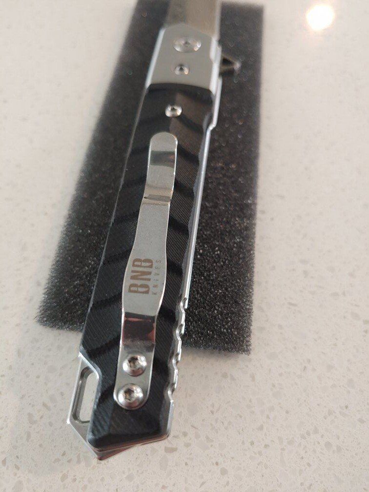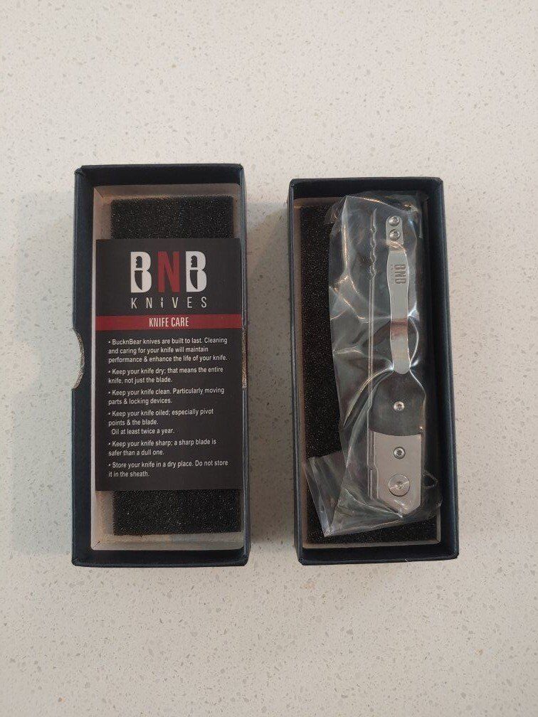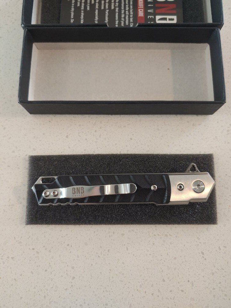 CashAppThis is new, in the box. Never used. Model is the bnb42011 Very sleek knife with a buttery flip out action. Damascus blade