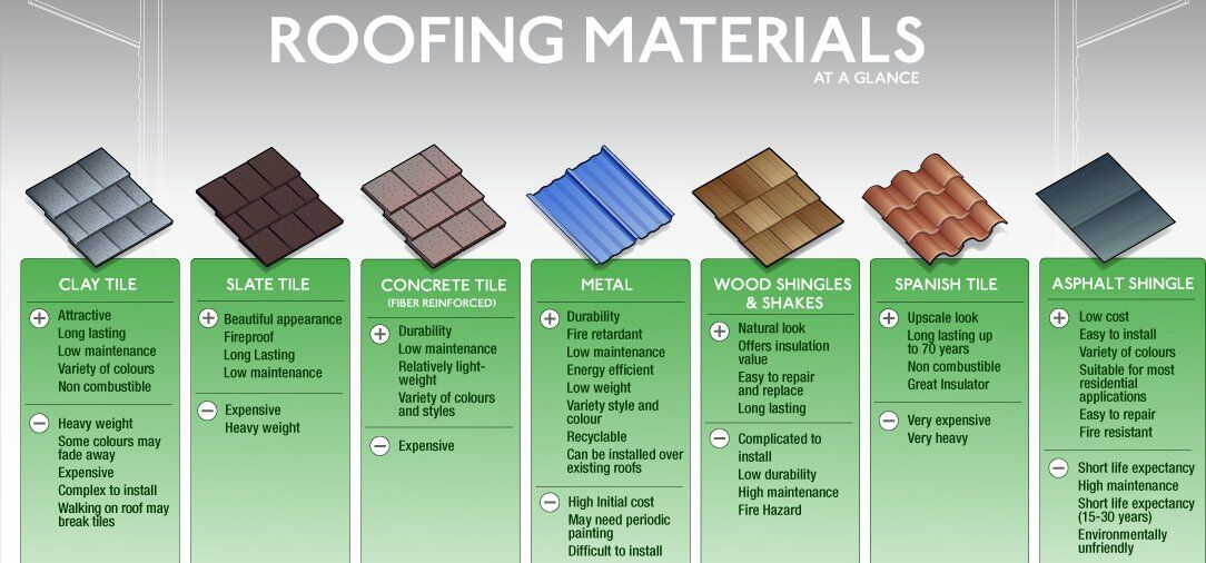 Metal Roofing, Clay Roofing, Slate, Concrete Tiles, Hot Mopped, Windows, Arched Roof, Bonnet Roof, Cross Gabled Roof, Flat Roof, plus a whole lot more!