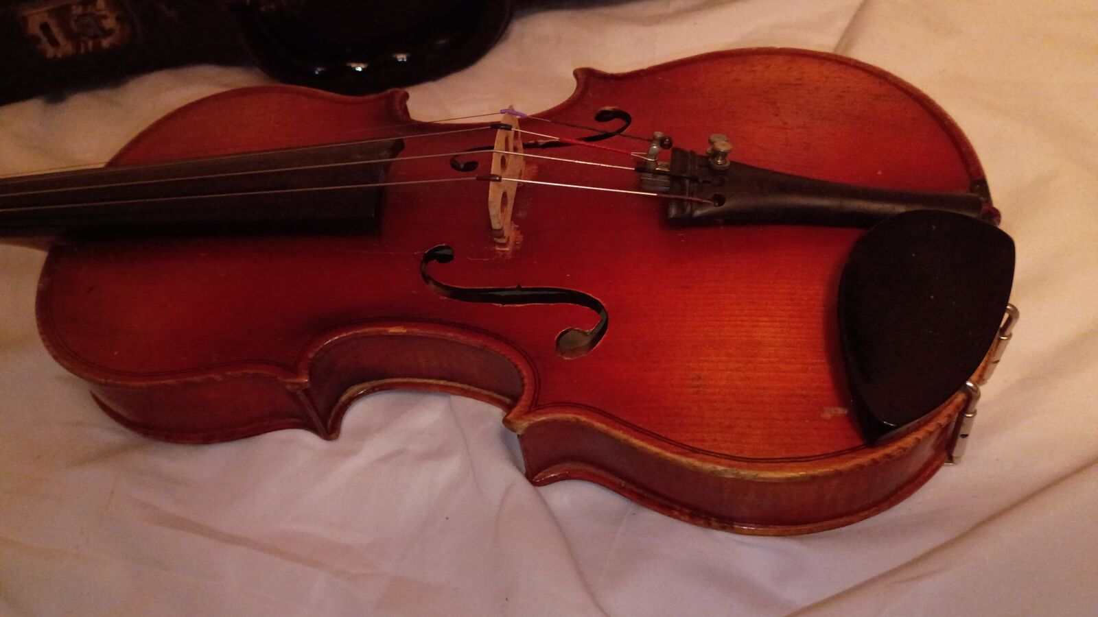 This is a vintage violin that is still in good condition. I usually like to fix these up before I sell them with new strings and a new tailpiece, but I just don't have time. This violin was made in West Germany and seems to be in sound condition. If it was up to me I would replace the strings and the tailpiece. The bridge seems to be in good condition. I would also get a better case. You will also need a shoulder rest. I do not have a bow for this violin. No bow included in the sale. You'll need to bring a bow if you want to try it out. The soundpost is upright. It is playable in its current condition but you're going to want to replace the strings at a minimum. This would be a really good violin to start out with a younger child. Much better than the cheap Chinese ones you can buy on Amazon.