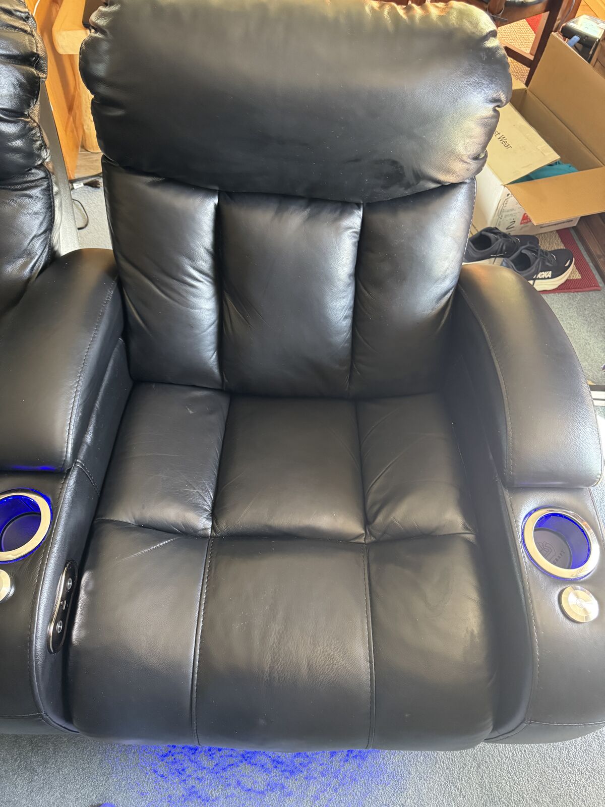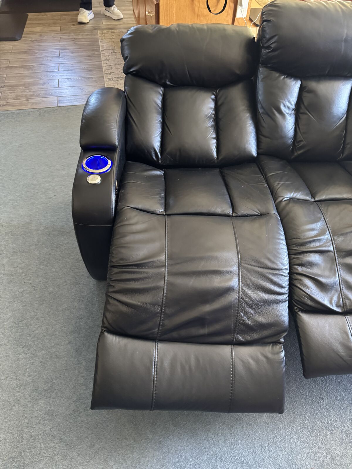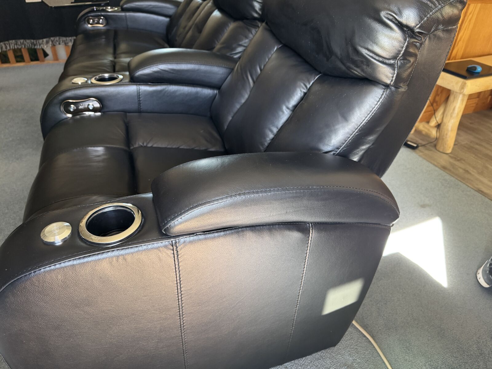 VenmoSienna Leather Spacesaver Home Theater Seating - used but in good condition - power recliners - located in Ammon Idaho - buyer handles all shipping - asking $500 - one leg rest is bent but still works fine - all pics are current - originally priced $2800 - PayPal/Venmo/Credit Card accepted: