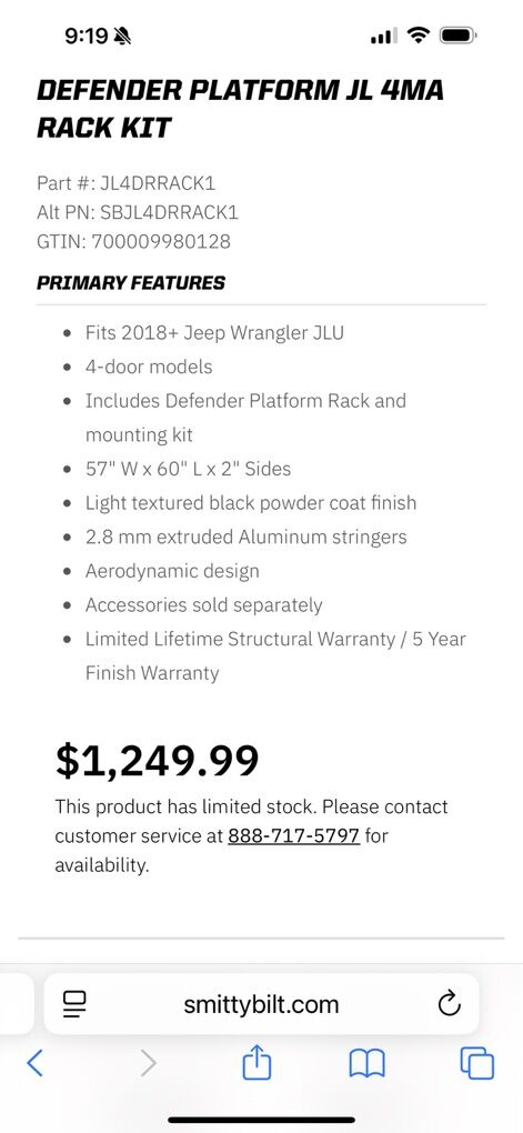 VenmoVery solid platform roof rack for a Wrangler JL. Excellent way to carry a roof top tent without drilling through top of the jeep, like many of the other brands of racks require. Very minimal use, in excellent condition, and with all the hardware included. This can either be a full length rack or the center section can be removed and the rack shortened up so that the jeep panels can be removed. See additional info in pictures, which were taken from the website.
