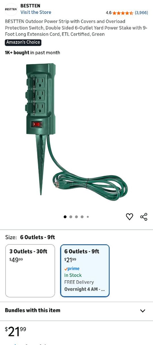 6 outlets, 9 ft cord, outdoor use for Halloween, Christmas, etc. New in box.