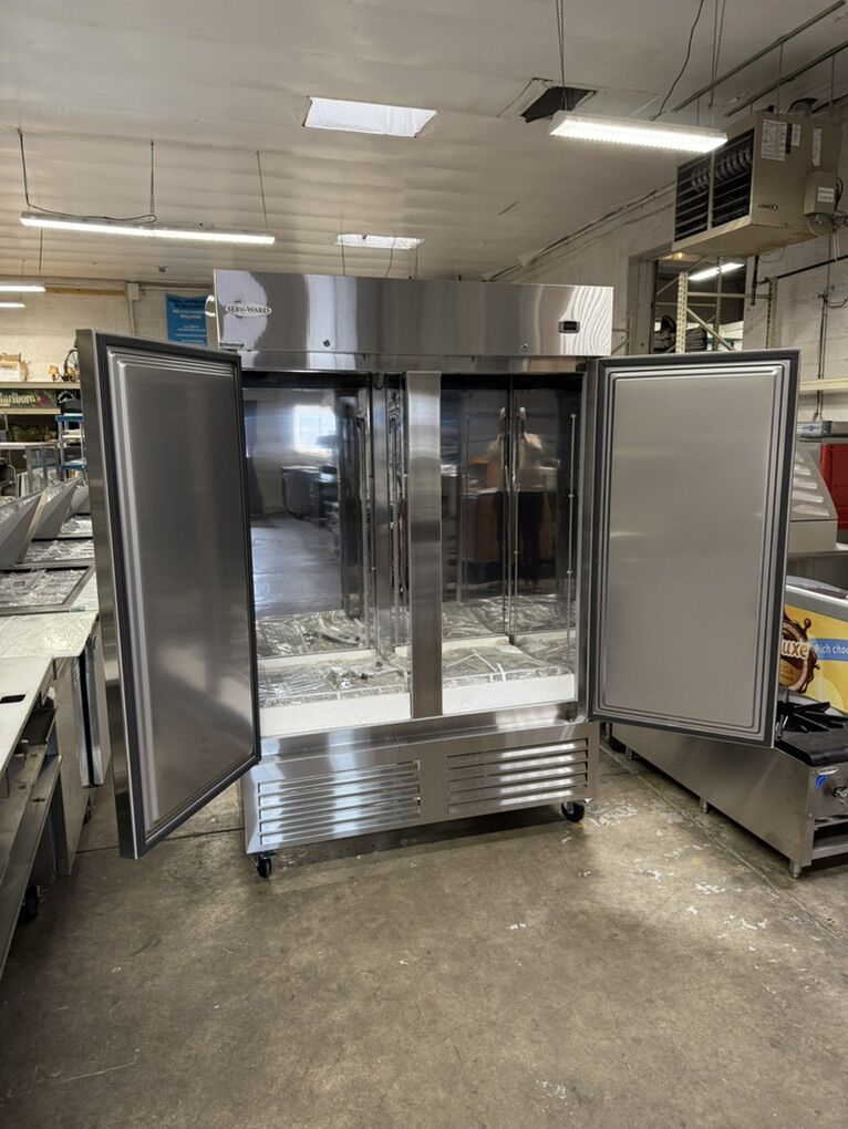 New 2 door Serv-Ware Refrigerator 49 Cu ft with wheels for easy moving , 3 years parts and Labors and 5 years compressor warranty 115 volts